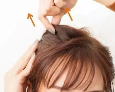第一步:将头顶头发平均分成两份,各取少量头发,卷起扎成小丸子,用皮筋固定。