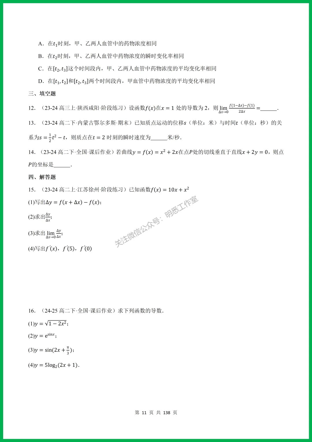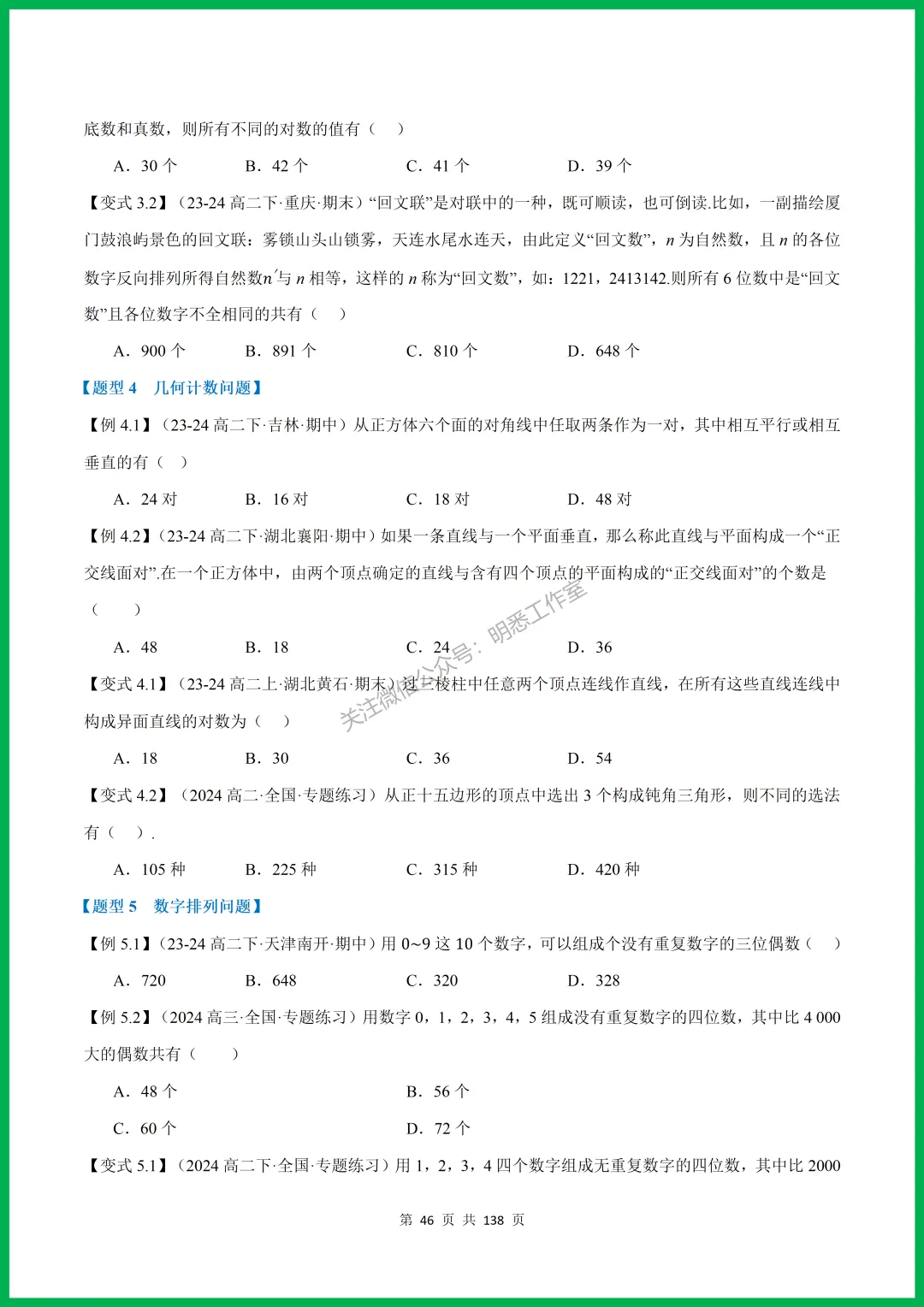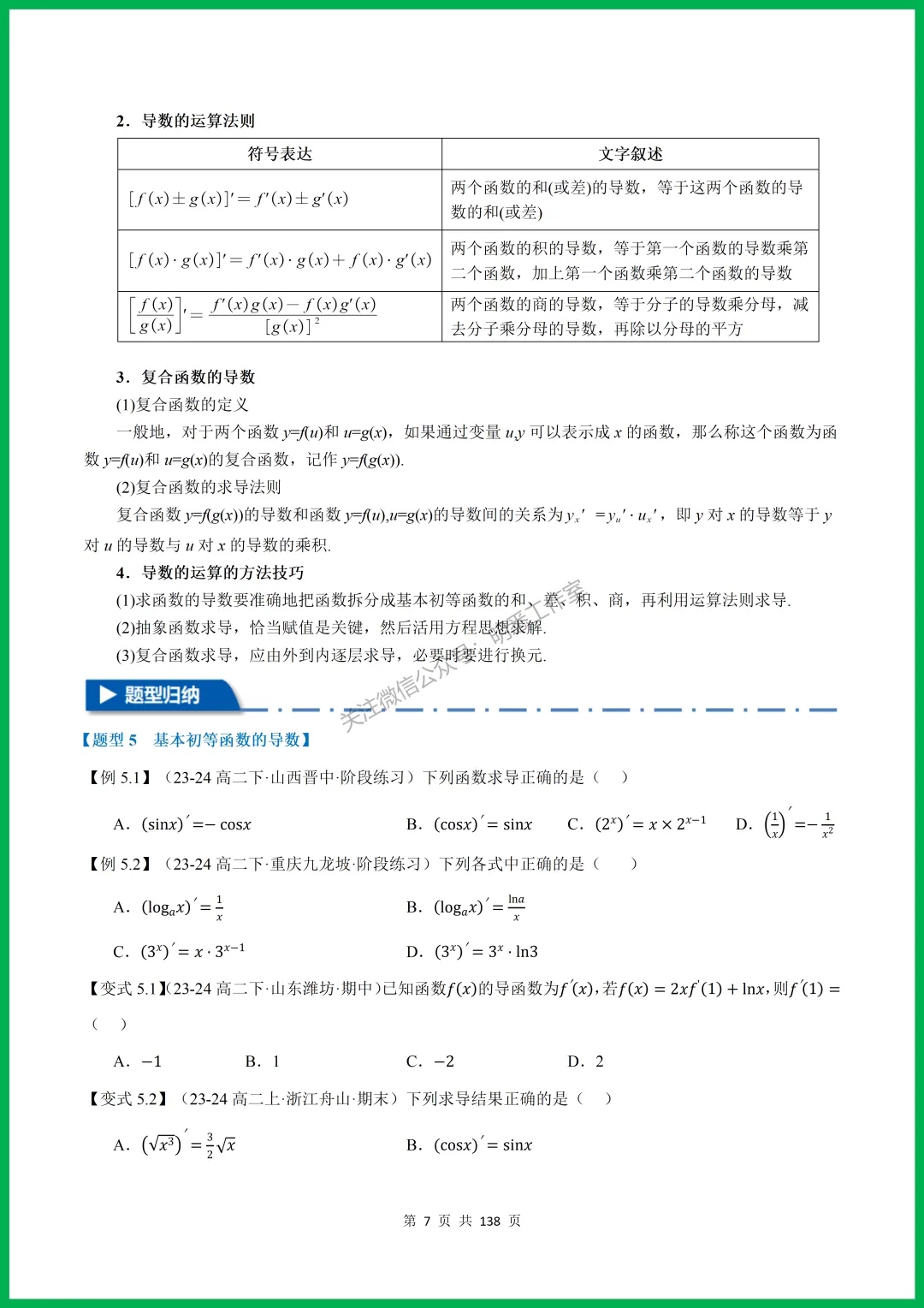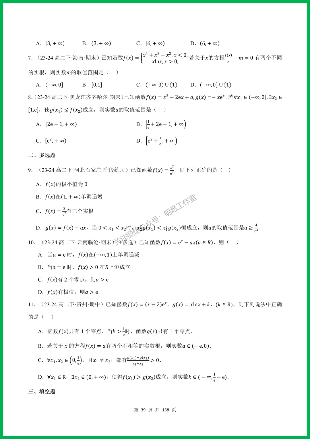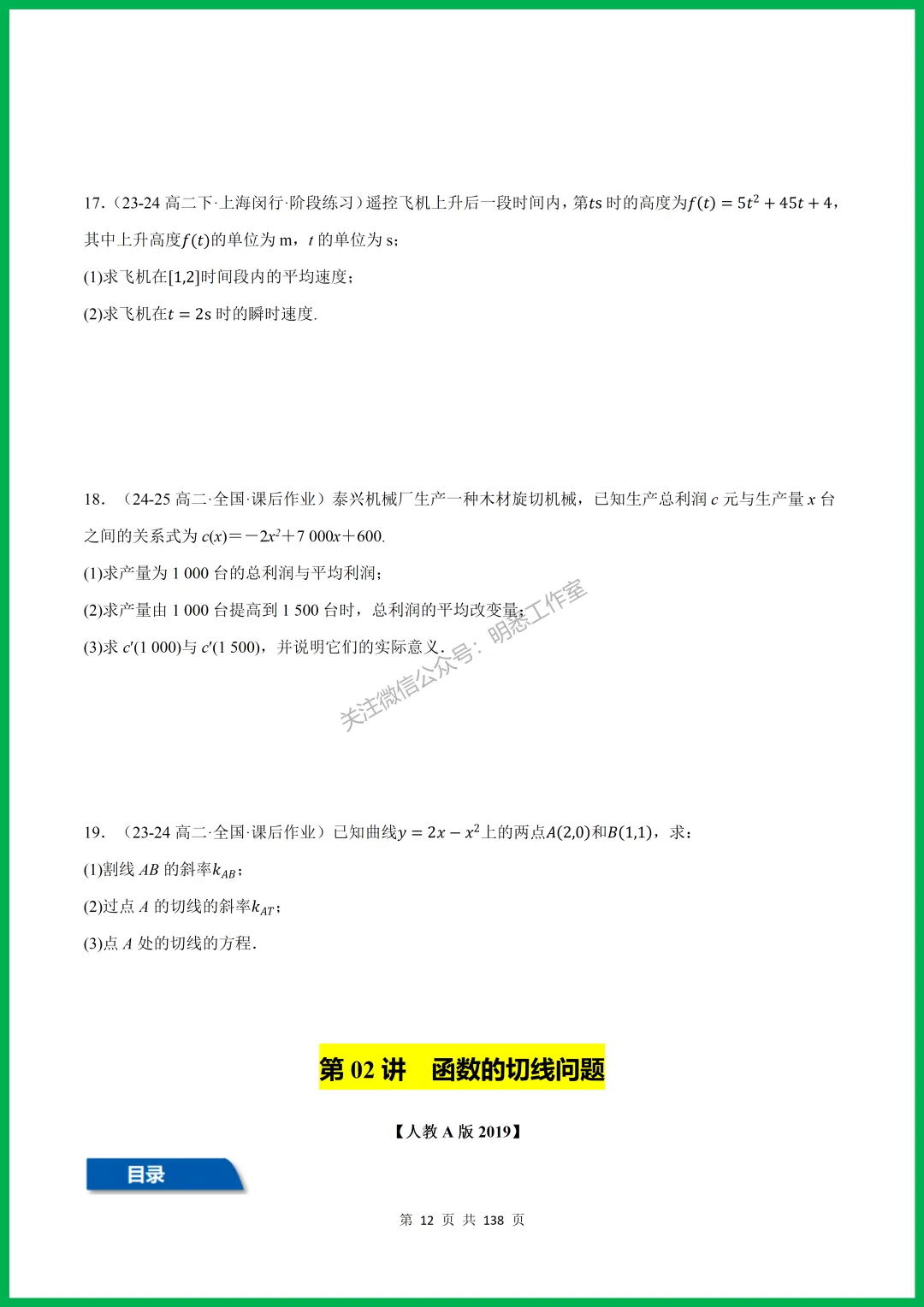 本篇完整电子版(学生版+答案版)会发至高中数学资料分享QQ群:334167124,在群中的成员可自行下载打印。若您不是群会员请回到公众号消息界面,然后向后台发送消息:入群