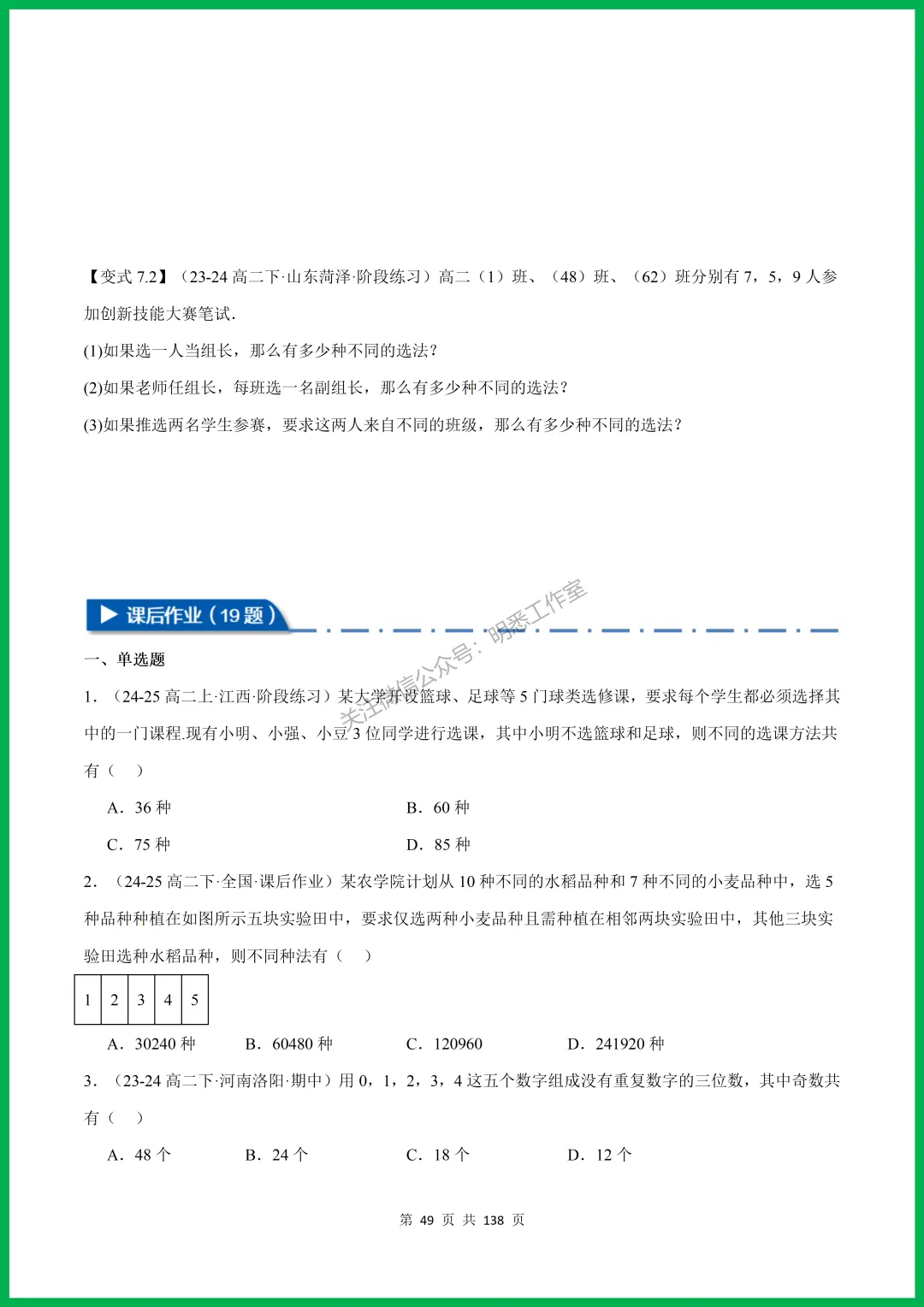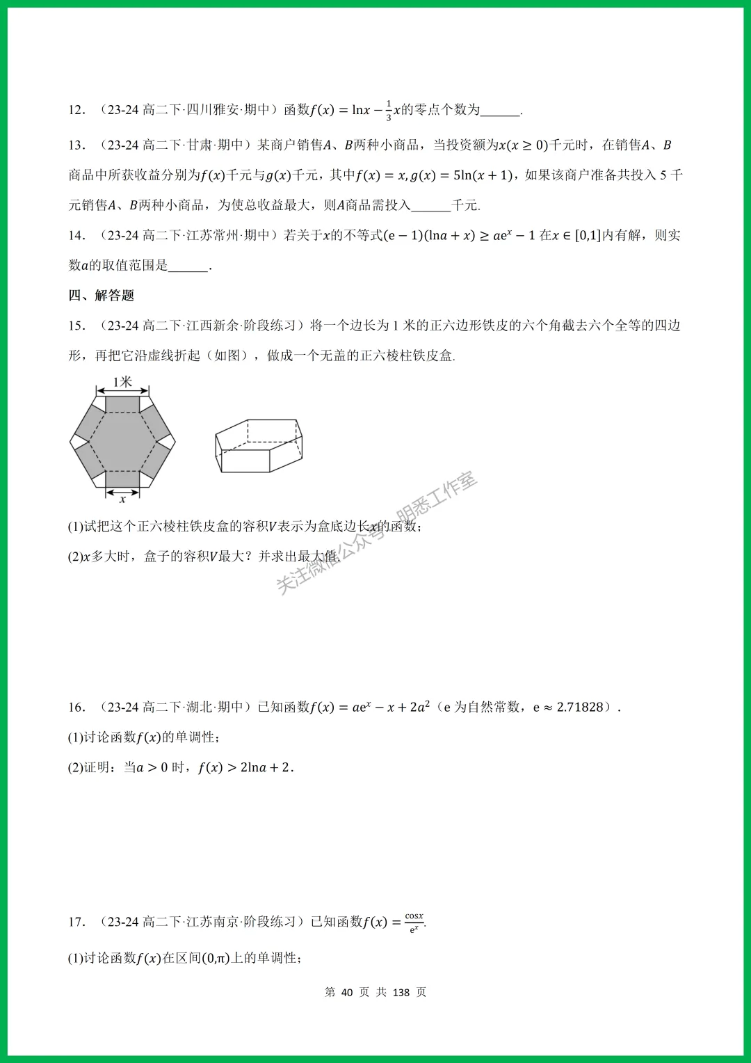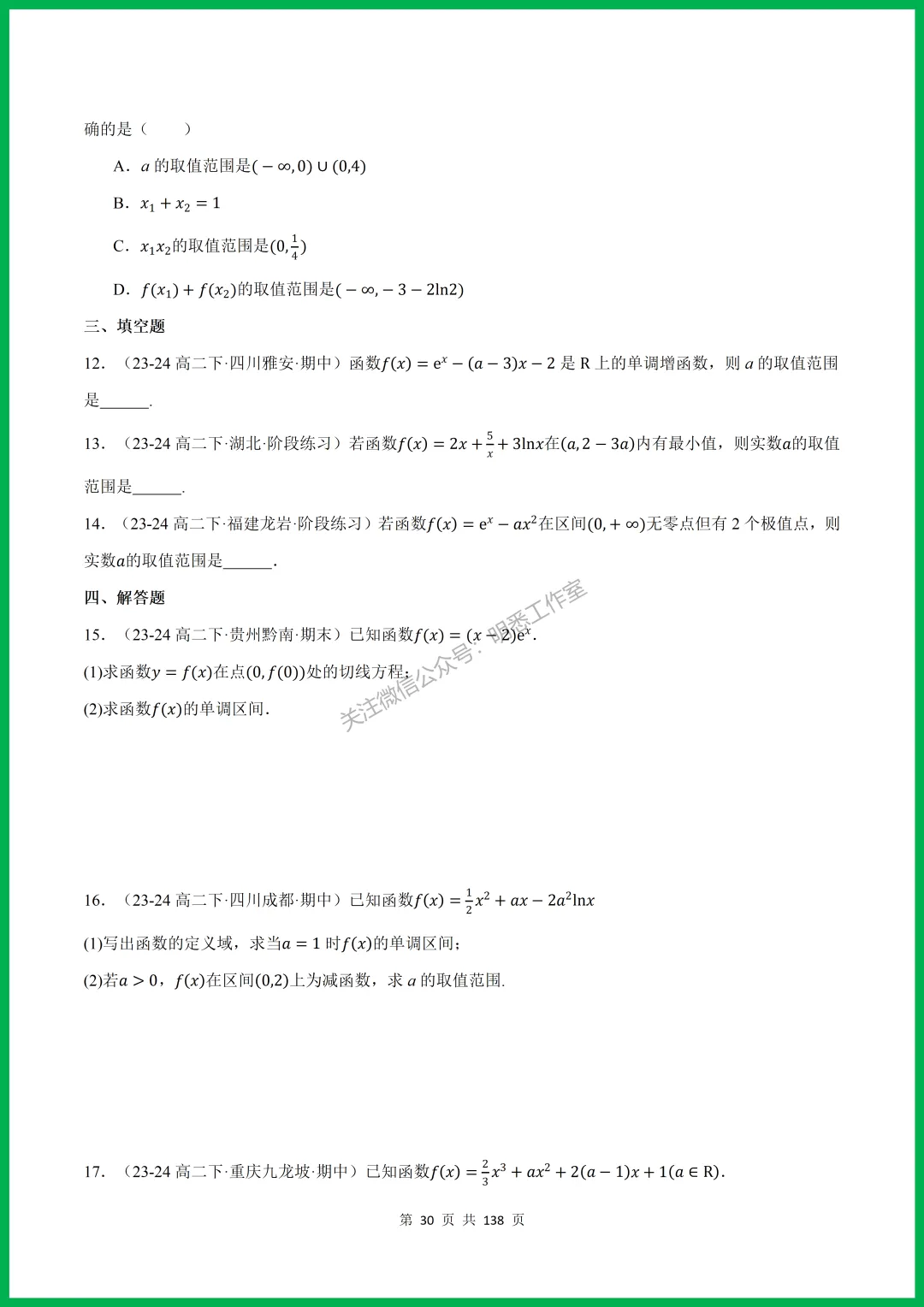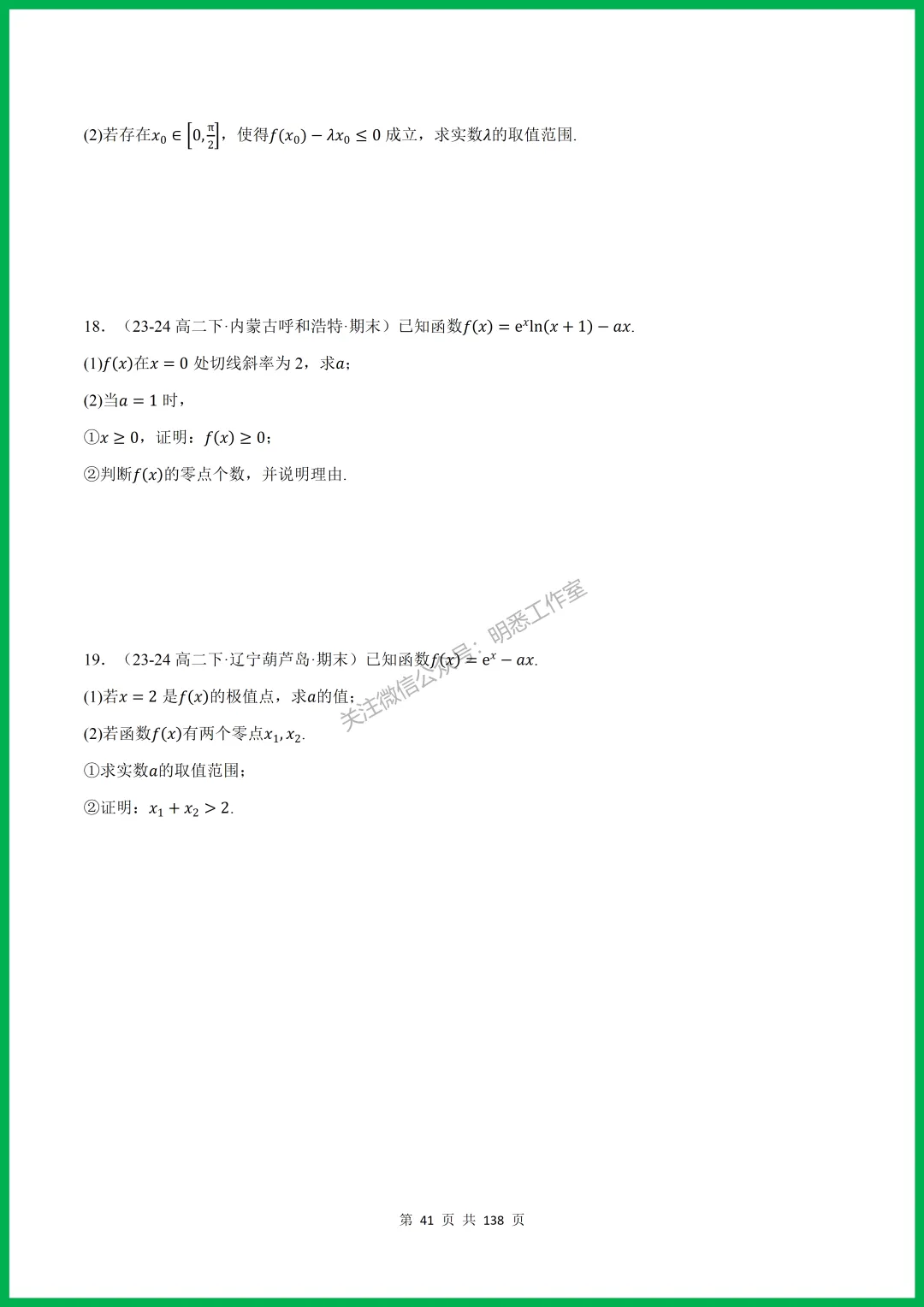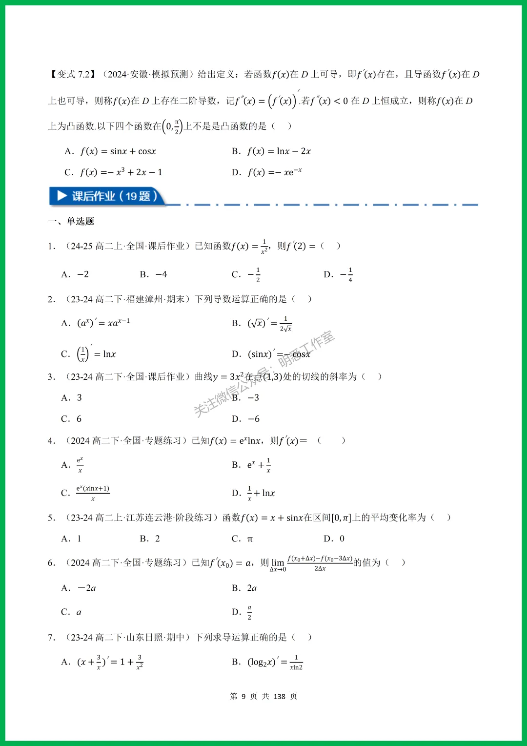 本篇完整电子版(学生版+答案版)会发至高中数学资料分享QQ群:334167124,在群中的成员可自行下载打印。若您不是群会员请回到公众号消息界面,然后向后台发送消息:入群