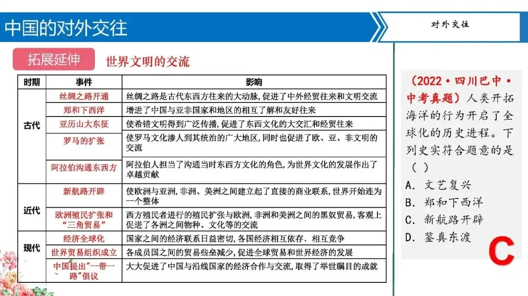 通过网盘分享的文件:专题03 中国的对外交往-中考历史二轮复习长效热点专题课件.pptx