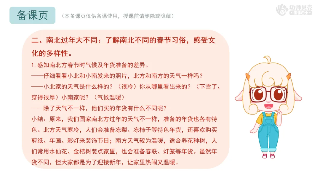 l课件准备:《南北一起过大年》PPT。