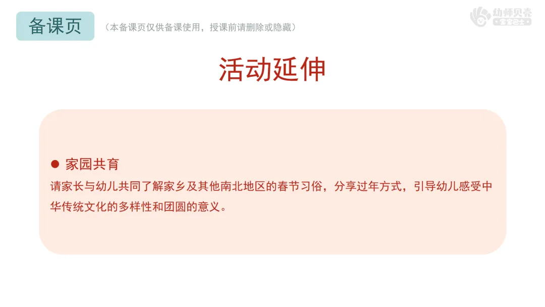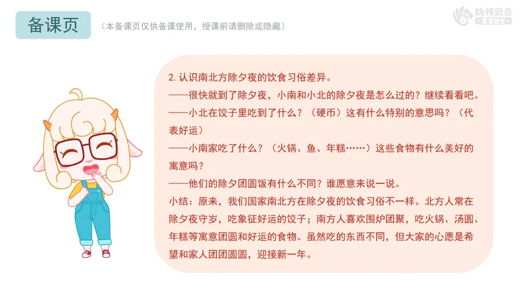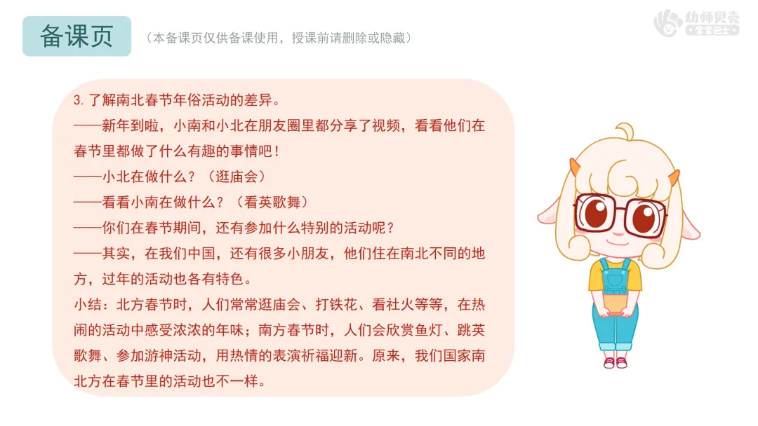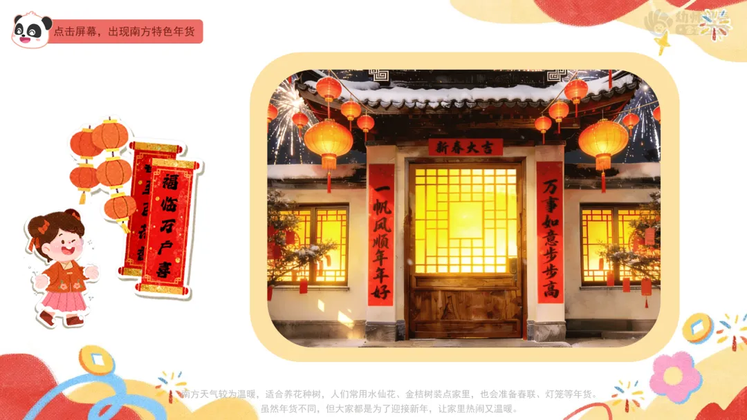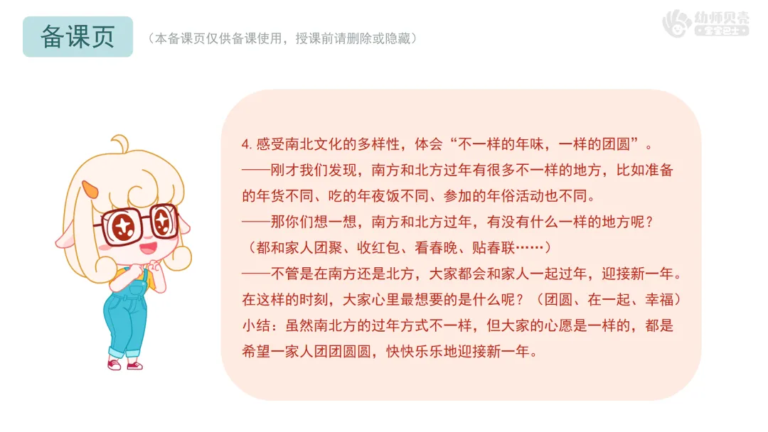 4.感受南北文化的多样性,体会“不一样的年味,一样的团圆”。