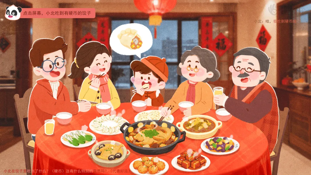 ——小北在饺子里吃到了什么?(硬币)这有什么特别的意思吗?(代表好运)