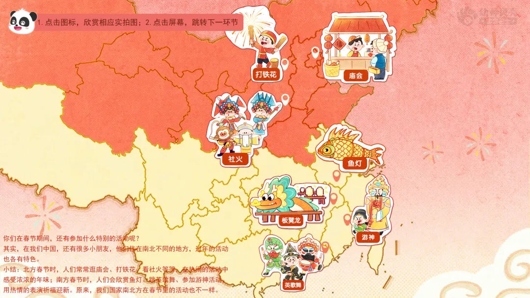 三、南北年味跳跳跳:巩固南北方春节习俗的认知。