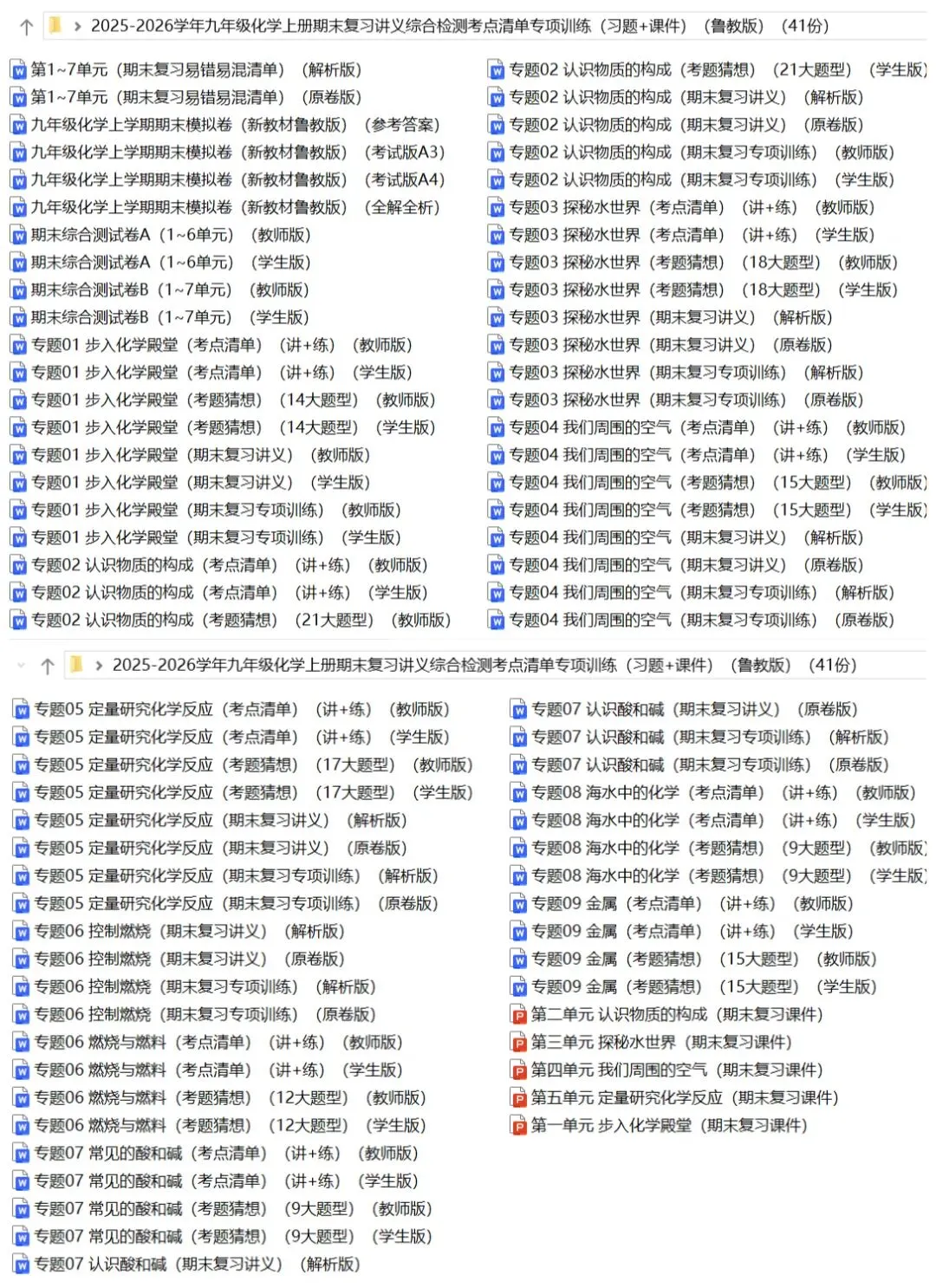 2025年九上化学鲁教版:期末复习讲义综合检测考点清单专项训练(习题+课件)41份含答案解析 | 完整电子版文档可下载打印
