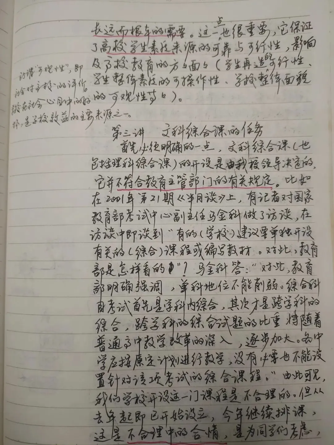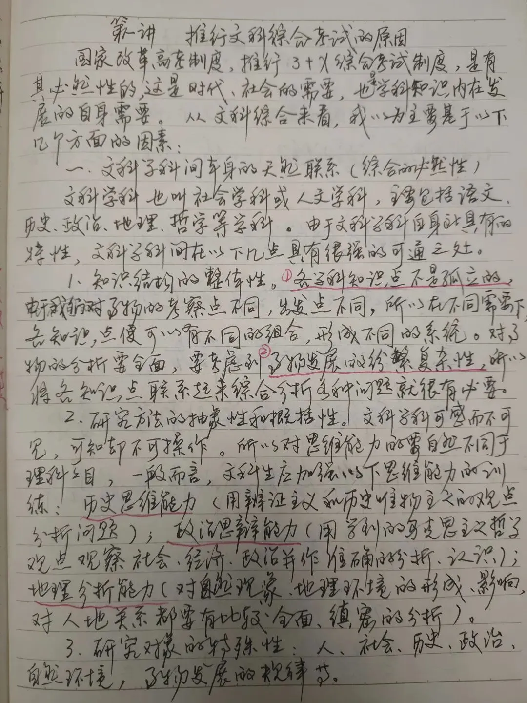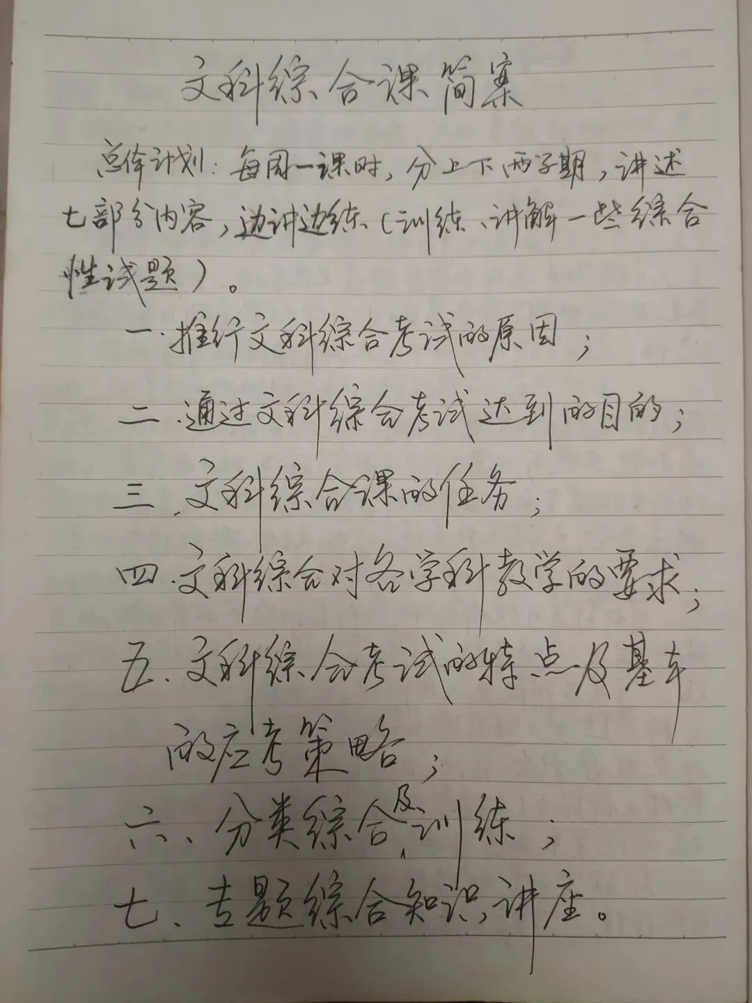 这应该是2001年的教案了,在整理一些准备烧毁的教辅书时,差点一起交付给母亲付之一炬了。2002年是又一年高考改革,文科生考文科综合,理科生考理科综合。这一届学生,2001年的高考结束后就进入高三了。