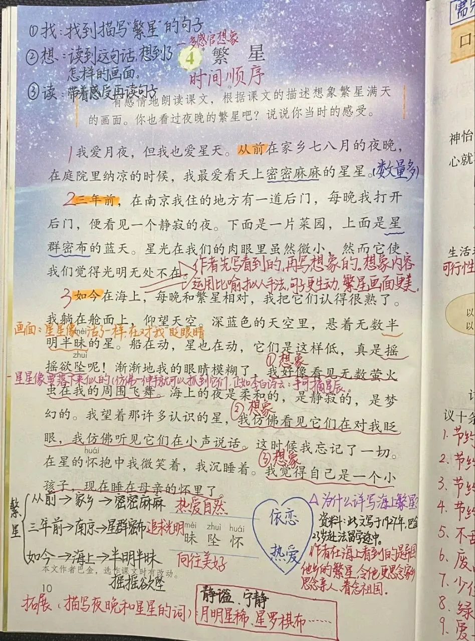 《繁星》 根据课文的描述想象繁星满天的画面。