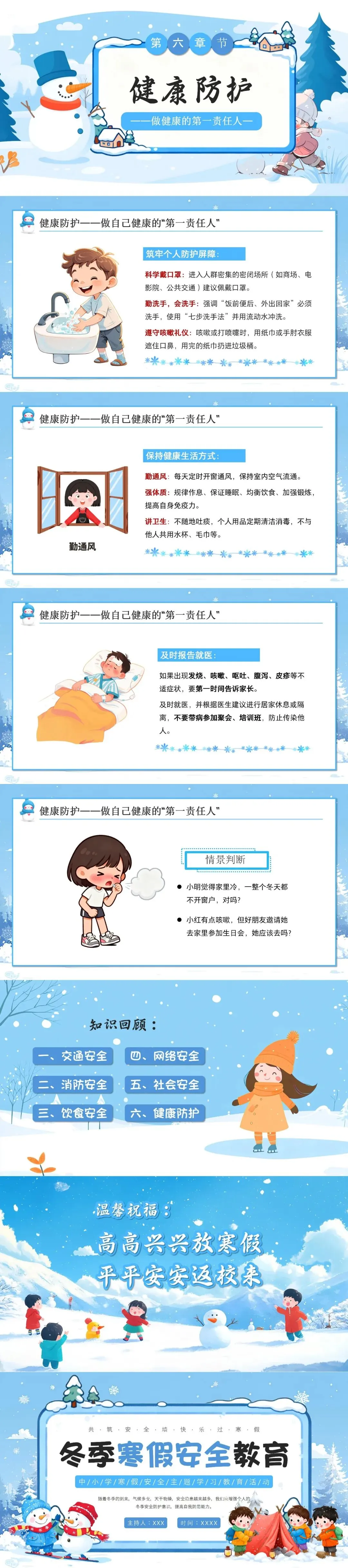所以,为了让我们每个人都能够度过一个平安、健康、快乐的假期,今天这节班会课,我们就共同来学习——“平安过寒假”!让我们把安全的警钟长鸣于心,为我们美好的假期生活,保驾护航!