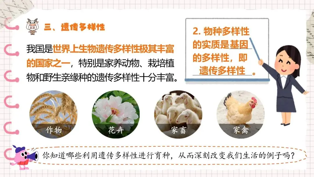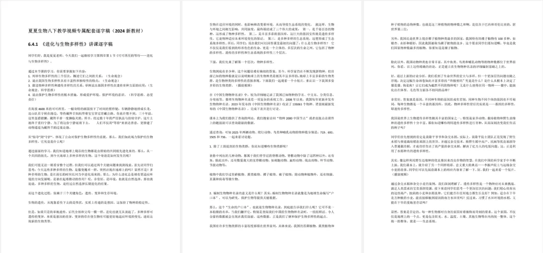 今天更新的是2025新八下6.4.1《生物的多样性》的课件、教学视频、教案、讲课逐字稿和押题卷,送默写小纸条,进Vip交流群!