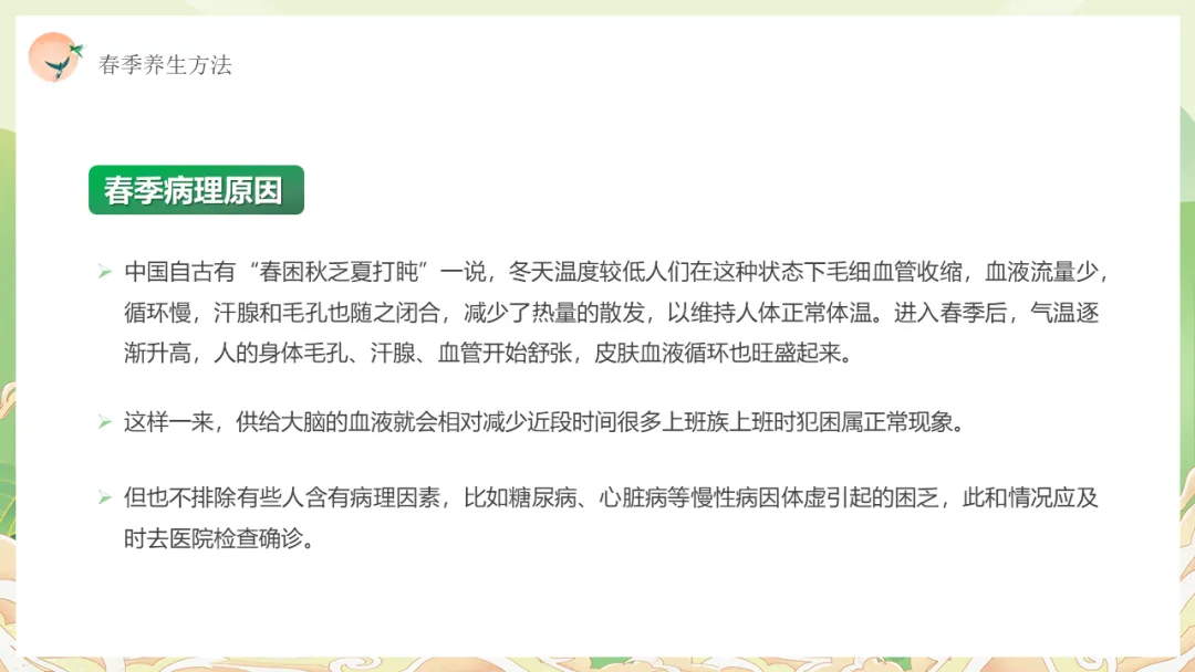 春天里百花开,春天生机勃勃、万物复苏、令我们意气风发,但我们往往在春季会出现春困、乏力、旧病复发等。这是因为春季肝火最旺,身体阳气一旦充足就会自动冲击潜藏了一冬的病灶。
