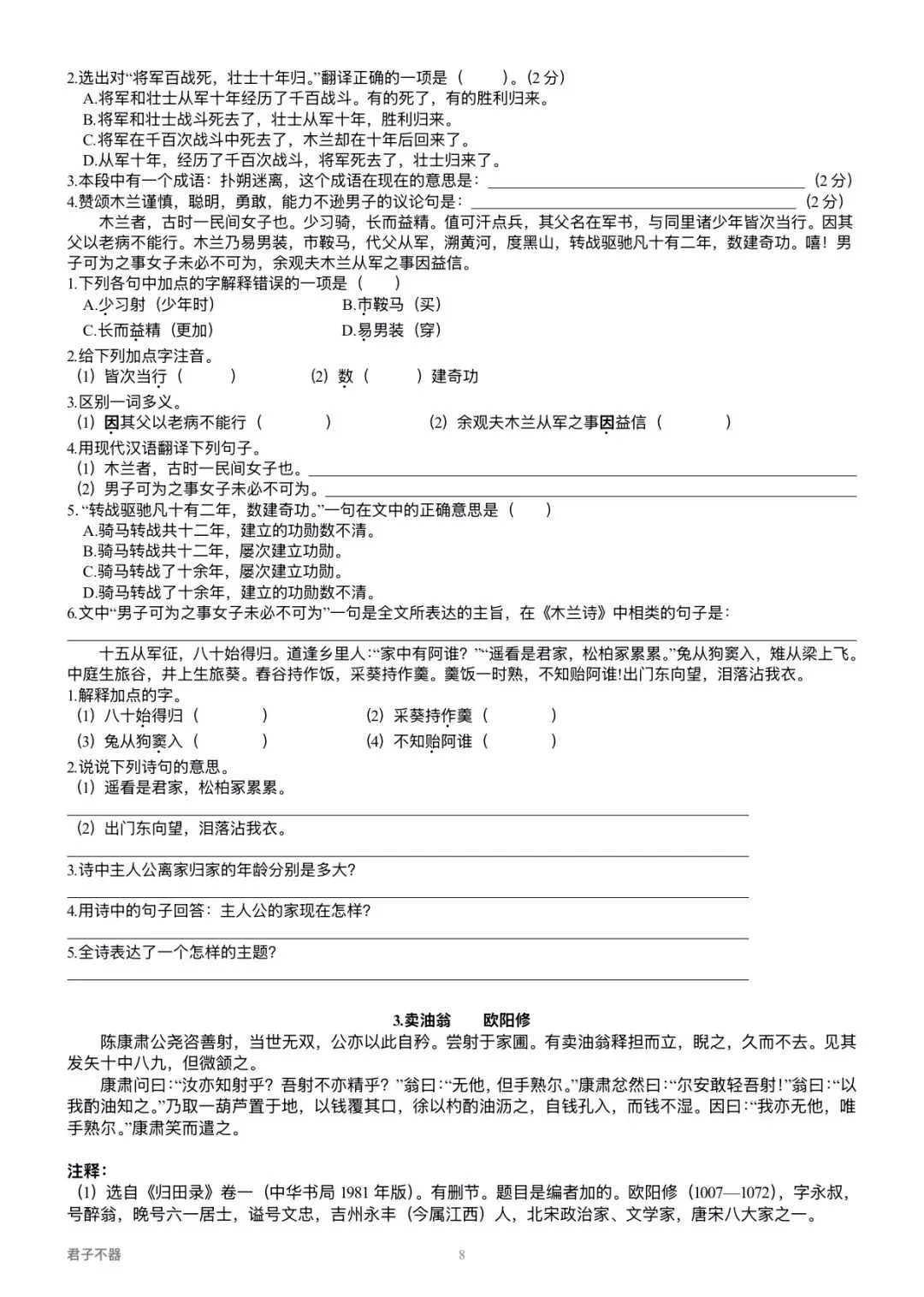 2026八年级语文寒假讲义!
