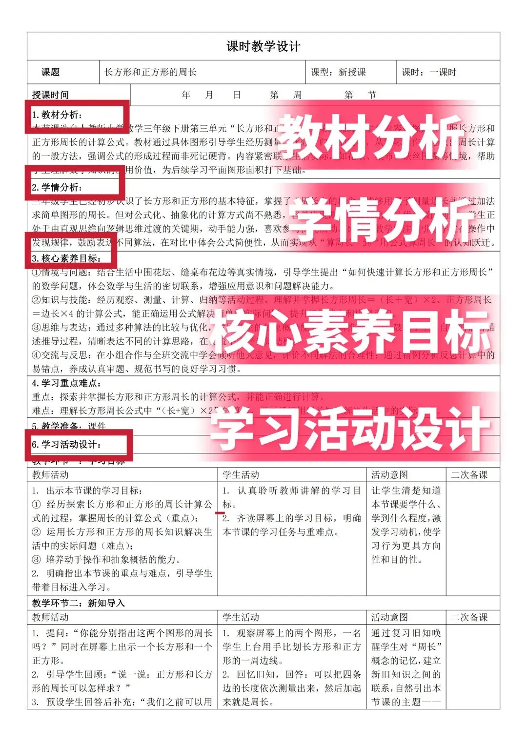 2026新版三年级下册数学核心素养教案配套课件