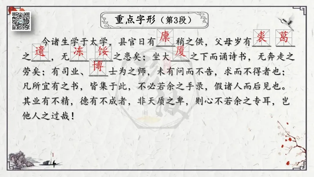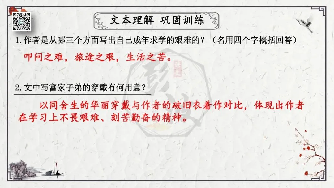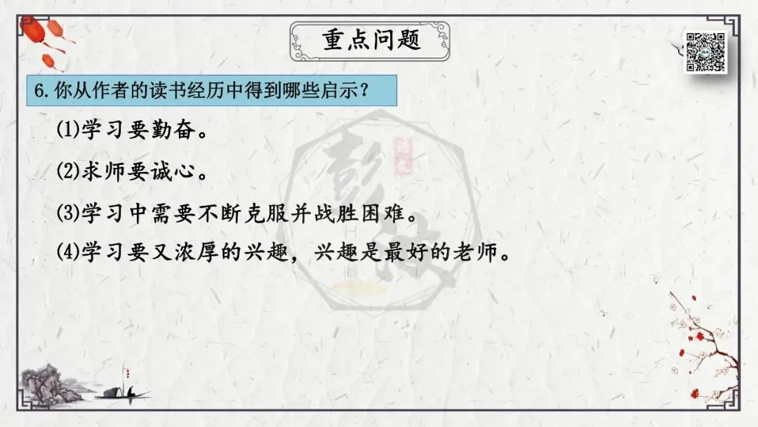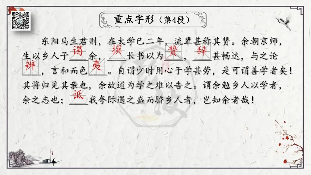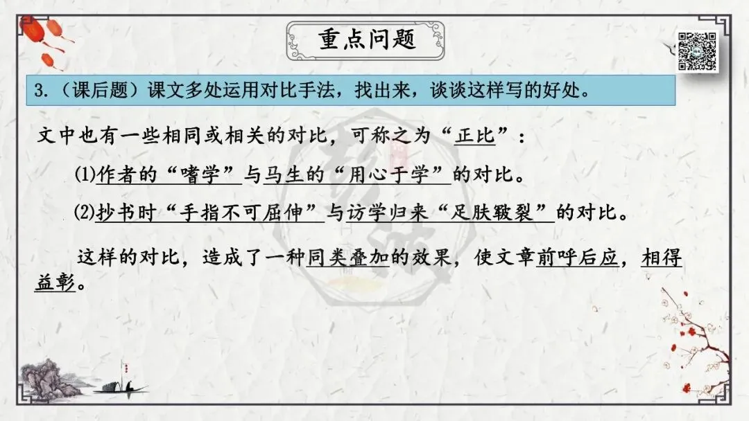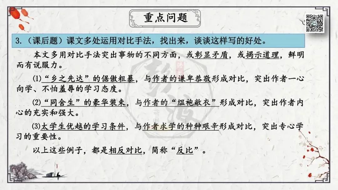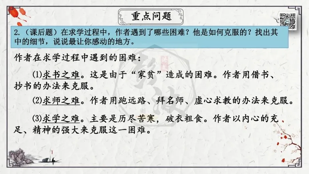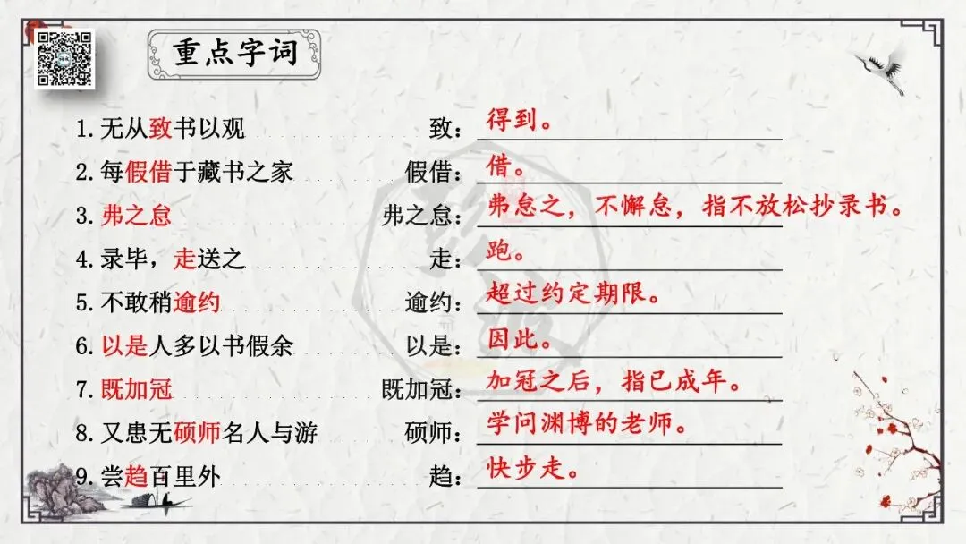 4.除此之外,课标中“随文学习基本的词汇、语法知识,用来帮助理解课文中的语言难点;了解常用的修辞方法,体会它们在课文中的表达效果”,即要求在随文学习中要掌握文言文实词、虚词、语法、修辞、句子翻译、文意理解、语言赏析等知识点。