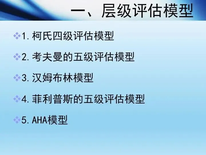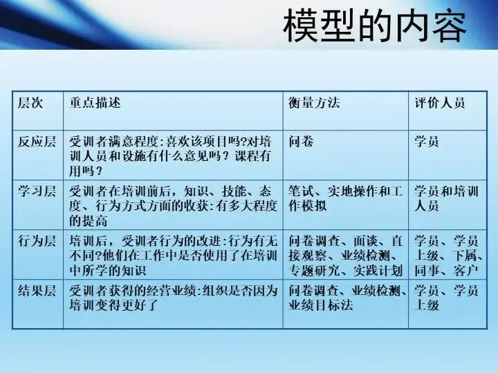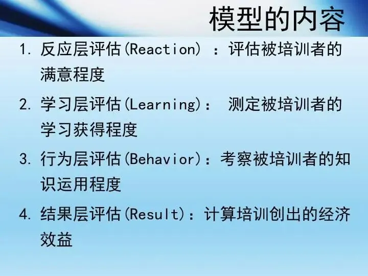 本资料为《培训评估的模型与借鉴价值(PPT课件)》,欢迎加入会员领取!
