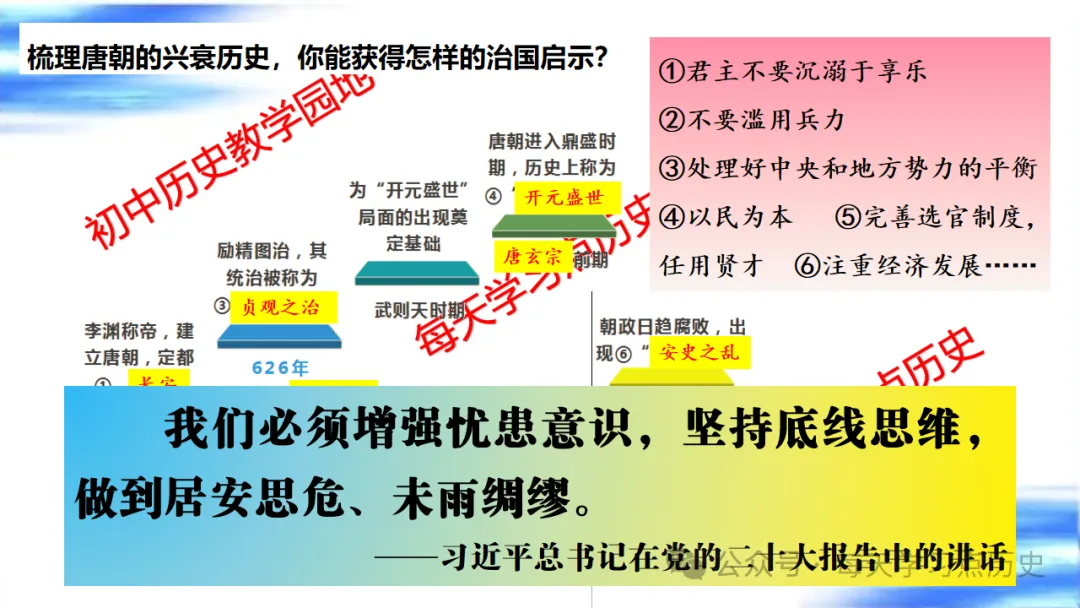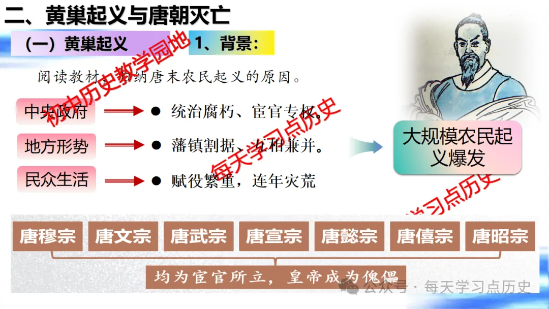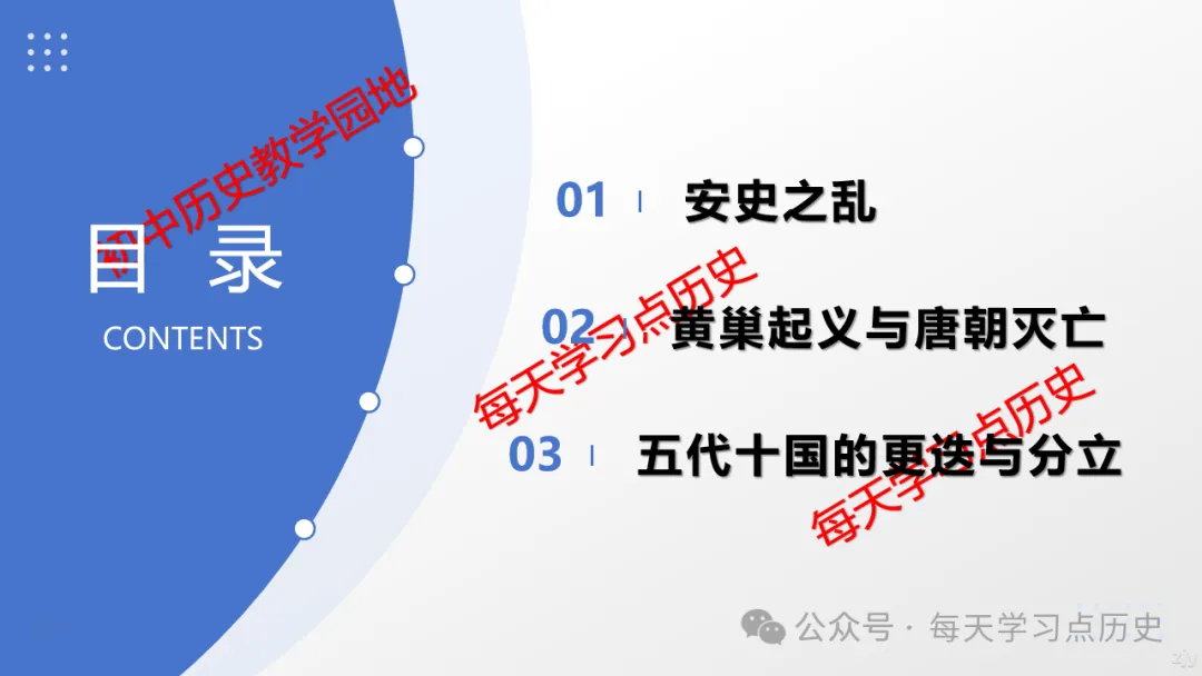 每天学习点历史公众号是初中历史教学园地的辅助号,发表的资料习题多点