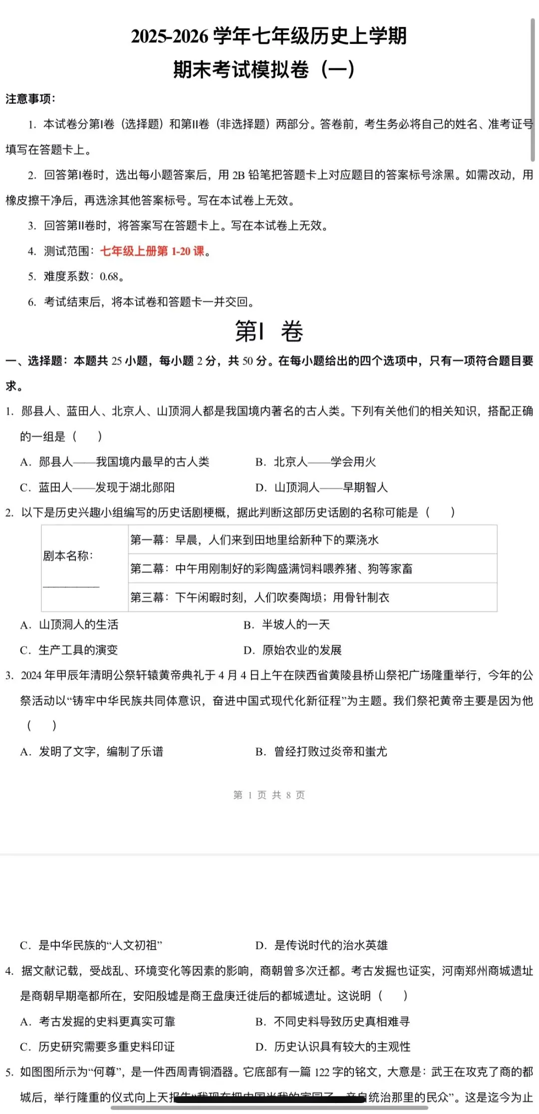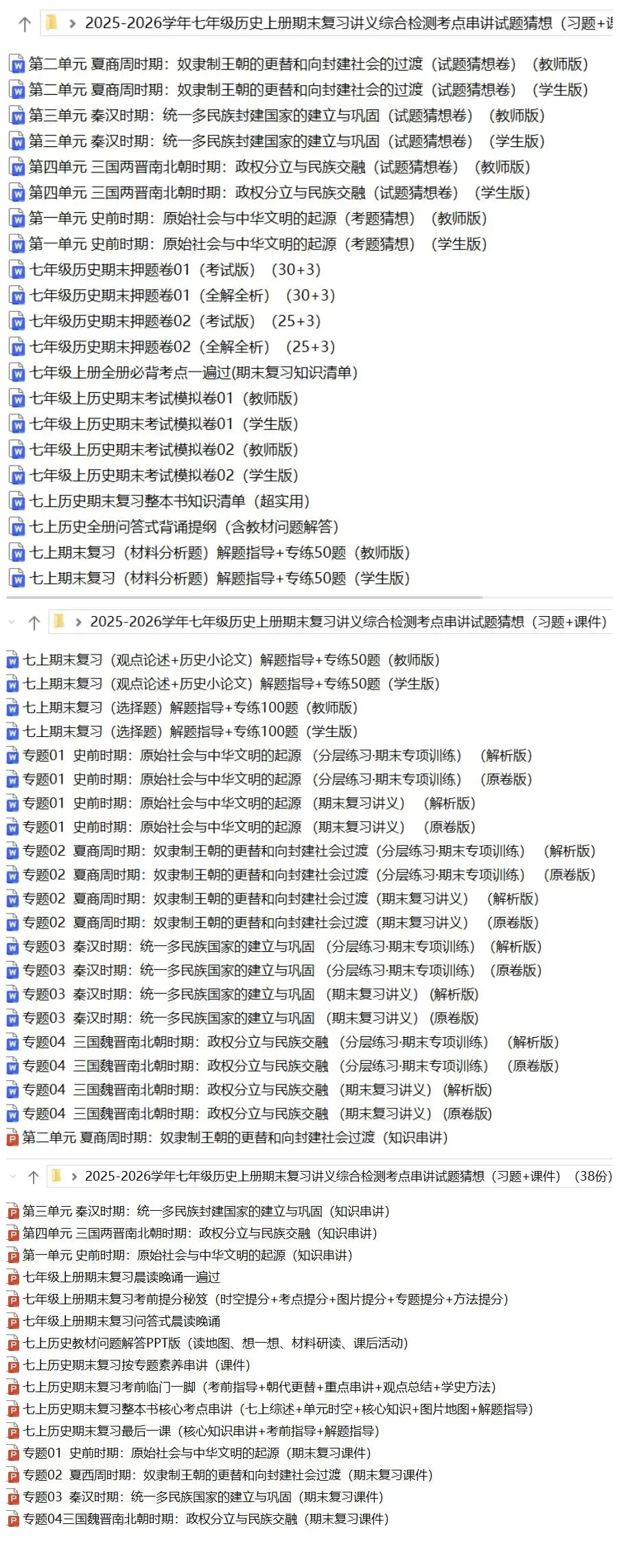 >2025年七上历史:期末复习讲义综合检测专项考点清单试题猜想(习题+课件)38份含答案解析(全国通用)完整电子版文档可下载打印