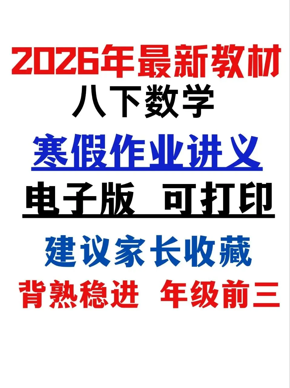 2026年最新教材八下数学寒假作业讲义,文末有完整电子版可下载,学霸学习好帮手,建议家长打印,学霸人手一份!