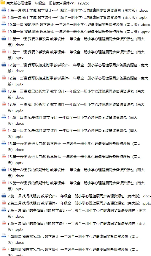 小学心理健康一年级全一册 教案+课件PPT(南大版),可下载打印!