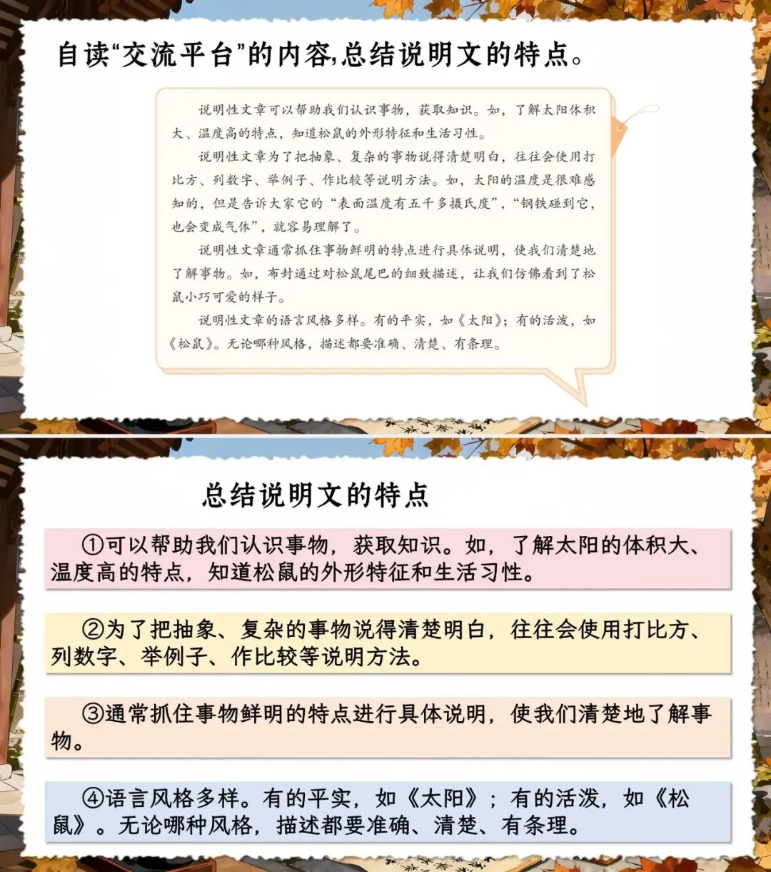 2.通过分析说明文的说明方法与事物特点,培养逻辑思维与科学认知能力;结合资料梳理事物信息,发展归纳与表达思维。