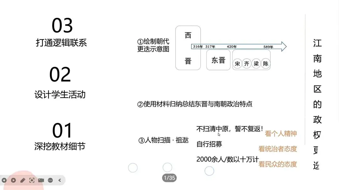 我与同校历史教师孟志伟老师共同设计的《东晋南朝政治与江南地区的开发》一课,在《中学历史教学参考》主办的首届教学设计大赛中获得一等奖。下面,我将结合这篇获奖教学设计,讲一讲我认为教学设计中应当充分关注的三个环节:逻辑、细节和活动。