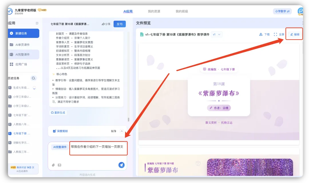 一句话 = 全套课件!九章爱学老师版 AI 黑科技上线