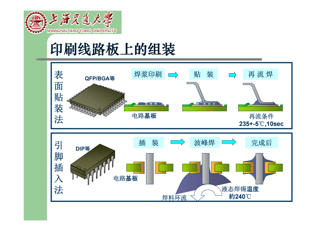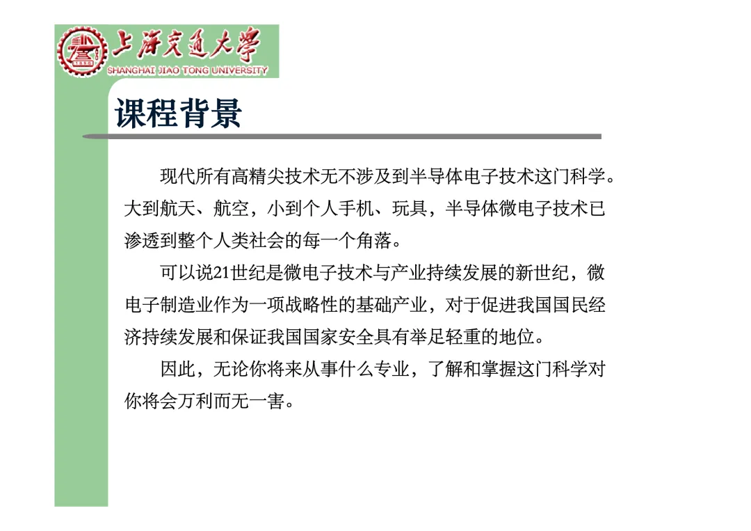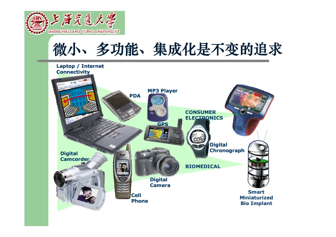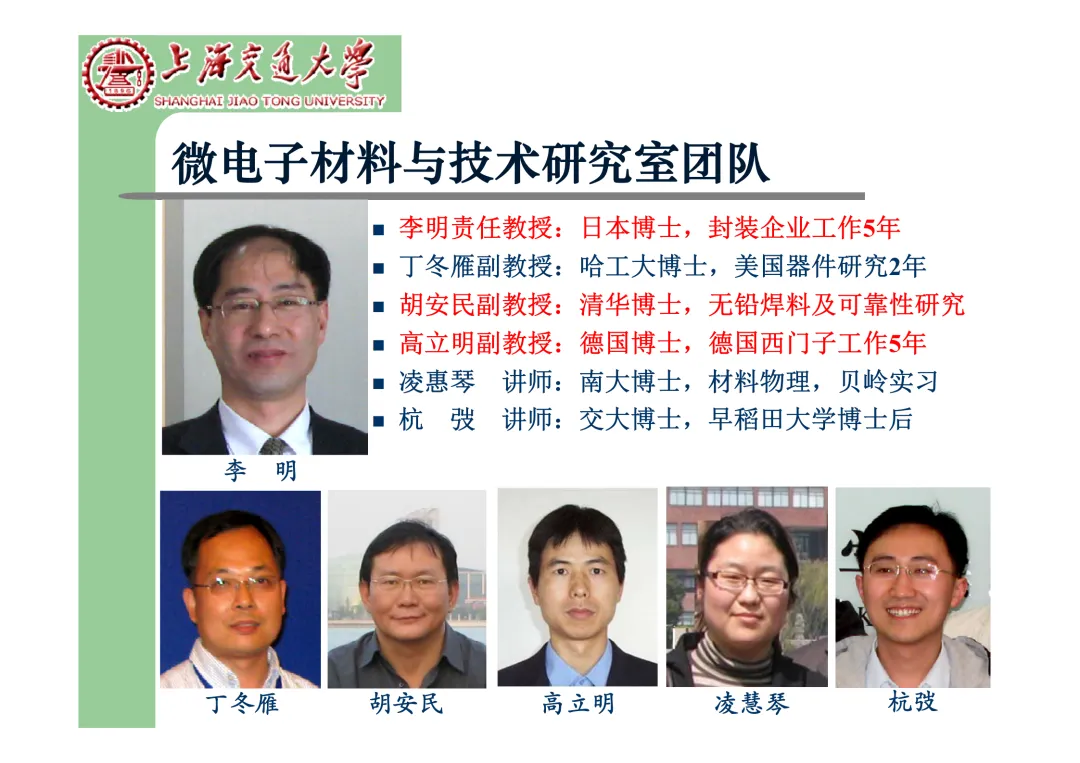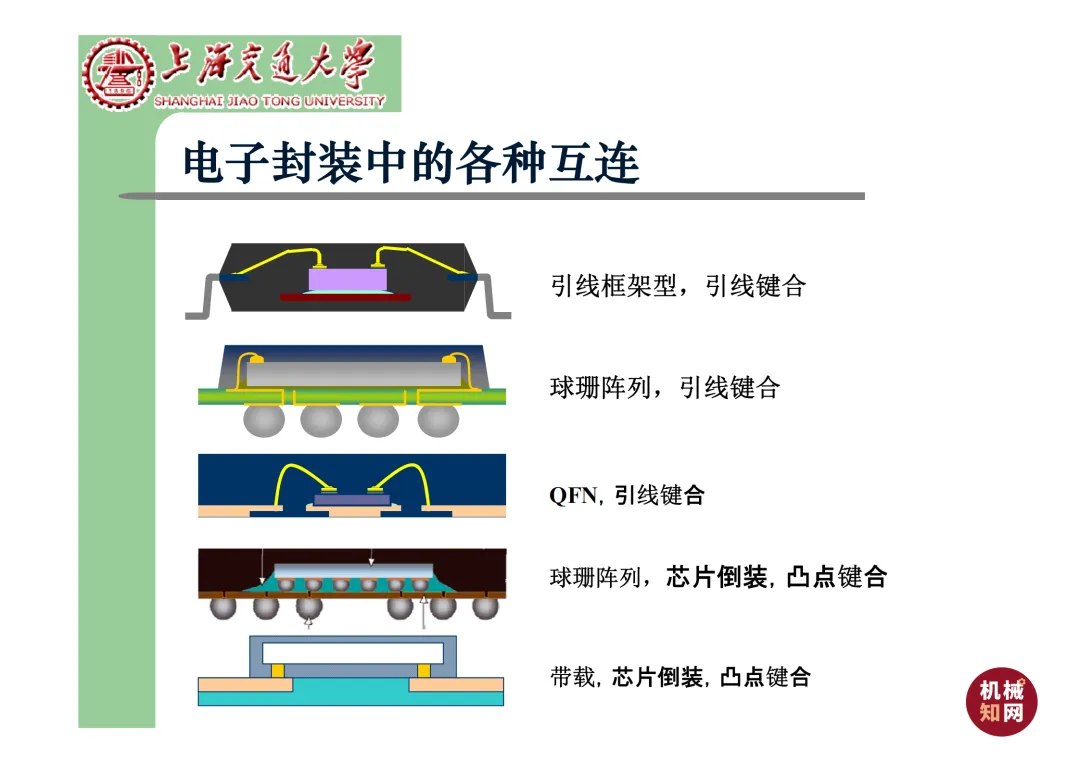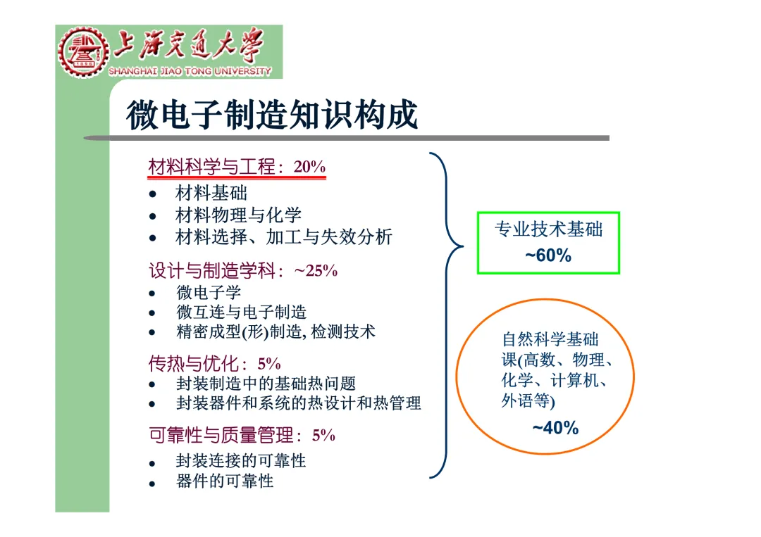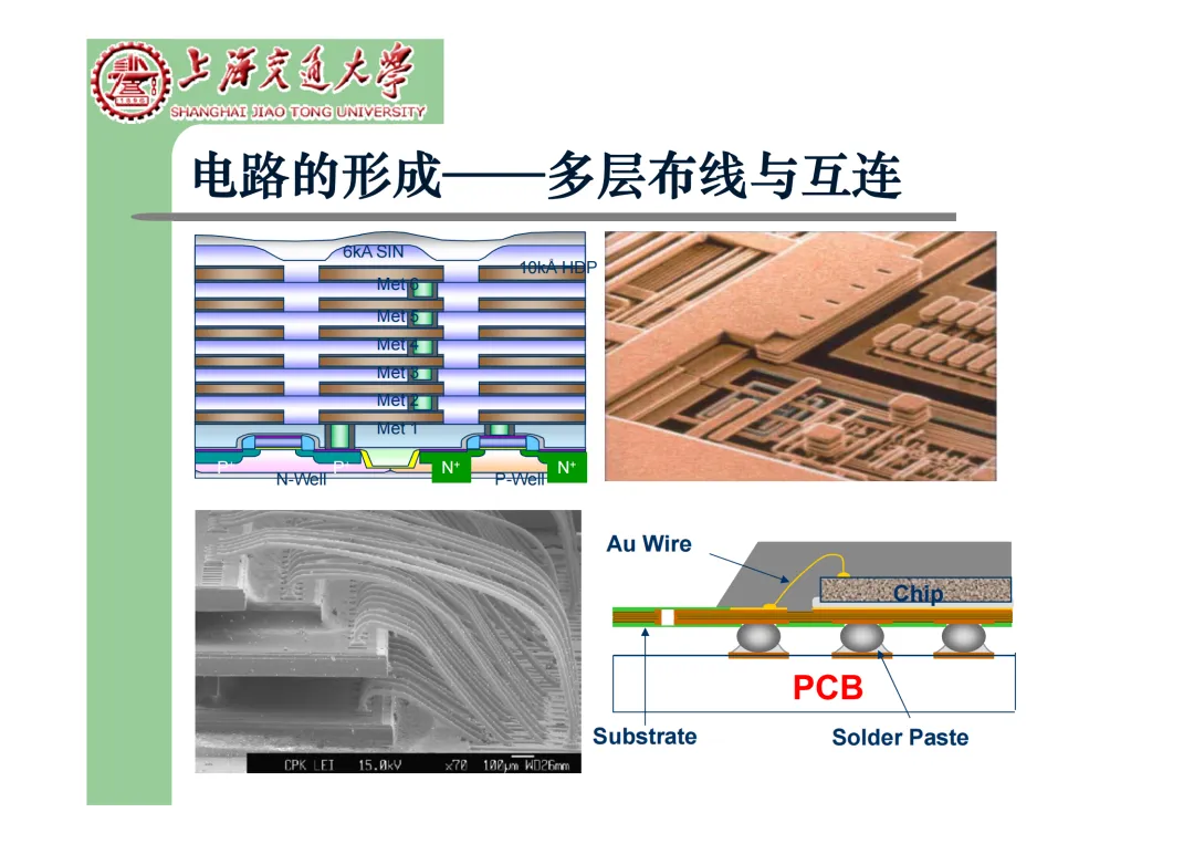 我们要学习《现代微电子封装材料及封装技术》,是为集成电路提供物理保护、电气连接、散热管理与机械支撑。随着摩尔定律逼近极限,先进封装技术已成为提升芯片性能、实现“超越摩尔”发展的关键路径。在封装材料方面,主要分为金属、陶瓷和高分子(塑料)三大体系。①金属材料(如铜、铝及其合金)导热性好但热膨胀系数高;②陶瓷材料(如Al₂O₃、AlN)耐湿性好、热导率高,适用于高性能领域;③高分子材料,成本低廉的环氧模塑料等高分子材料占据了塑封市场的90%以上。材料的发展趋势是高性能化与绿色化,例如开发高导热复合材料(如Al/SiC)以及无卤、无铅的环保材料。在封装技术上,经历了从通孔插装(DIP)、表面贴装(QFP)到阵列封装(BGA、PGA)的演进。当前主流已进入先进封装时代,其核心是通过异构集成来提升系统性能与集成度。关键技术包括:用于高密度互连的倒装芯片(FC);实现芯片横向集成的2.5D封装(使用硅中介层或EMIB桥接);以及通过硅通孔(TSV) 进行垂直堆叠的3D封装(如HBM内存);还有集成多种功能芯片的系统级封装(SiP) 和基于小芯片(Chiplet)的设计理念。此外,晶圆级封装(WLP) 直接在晶圆上完成封装,能实现最小的封装尺寸。文末提供完整文档下载,文档版权©上海交通大学-材料科学与工程学院-李明教授