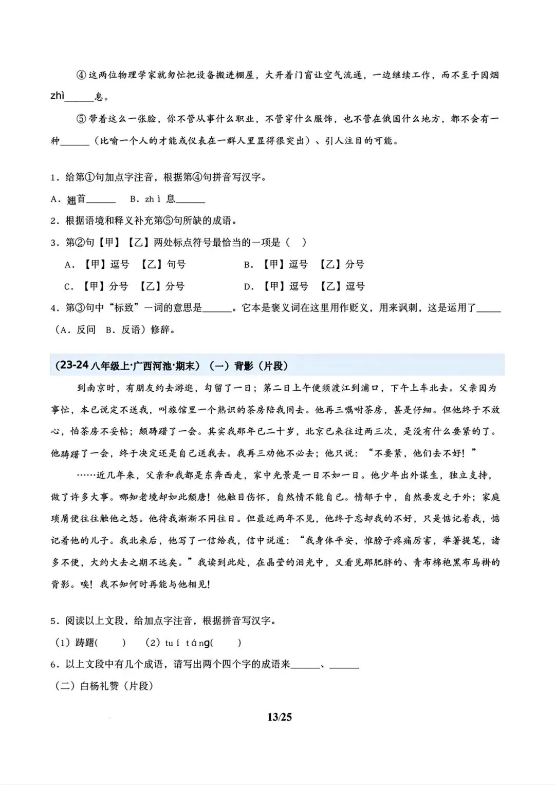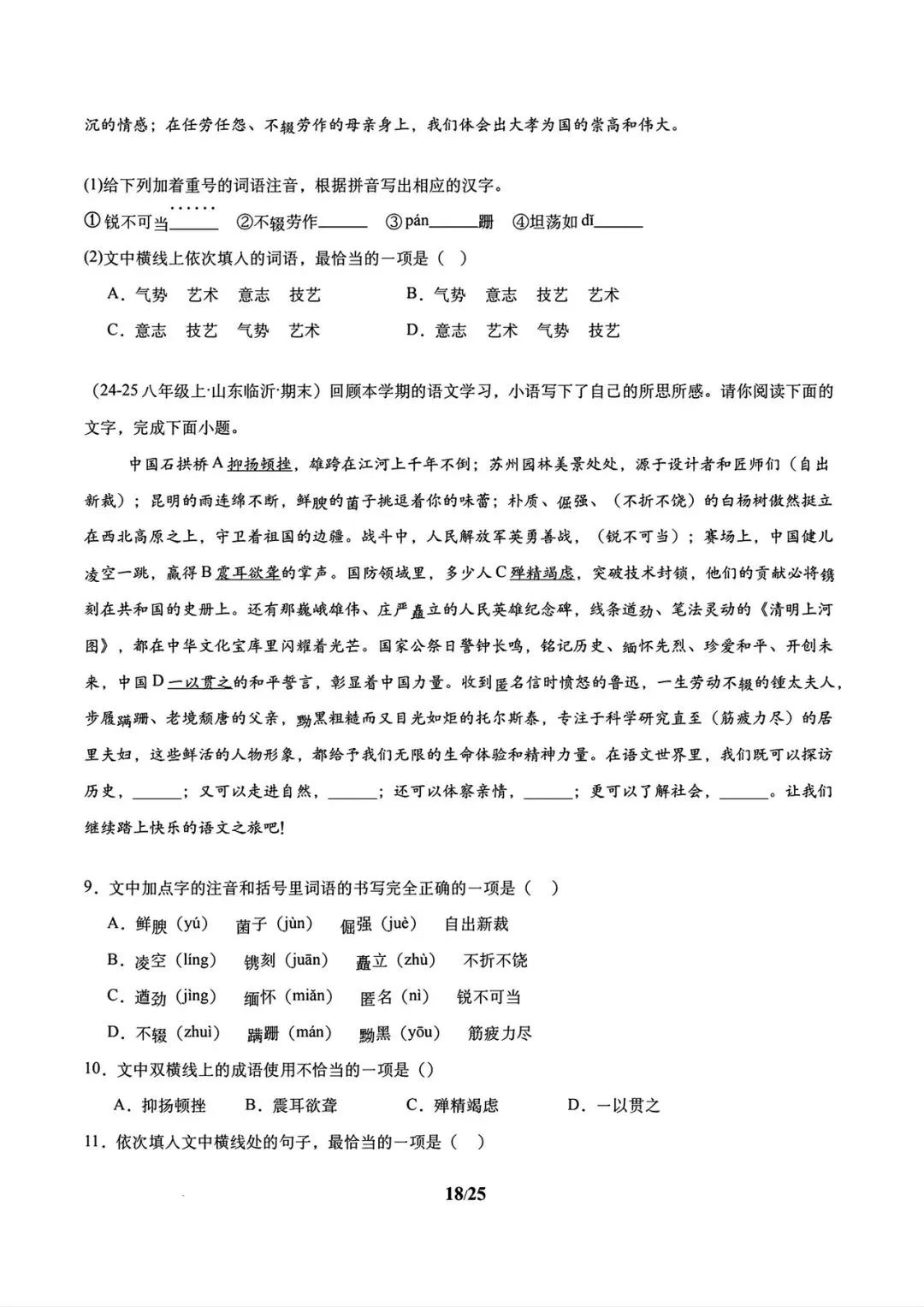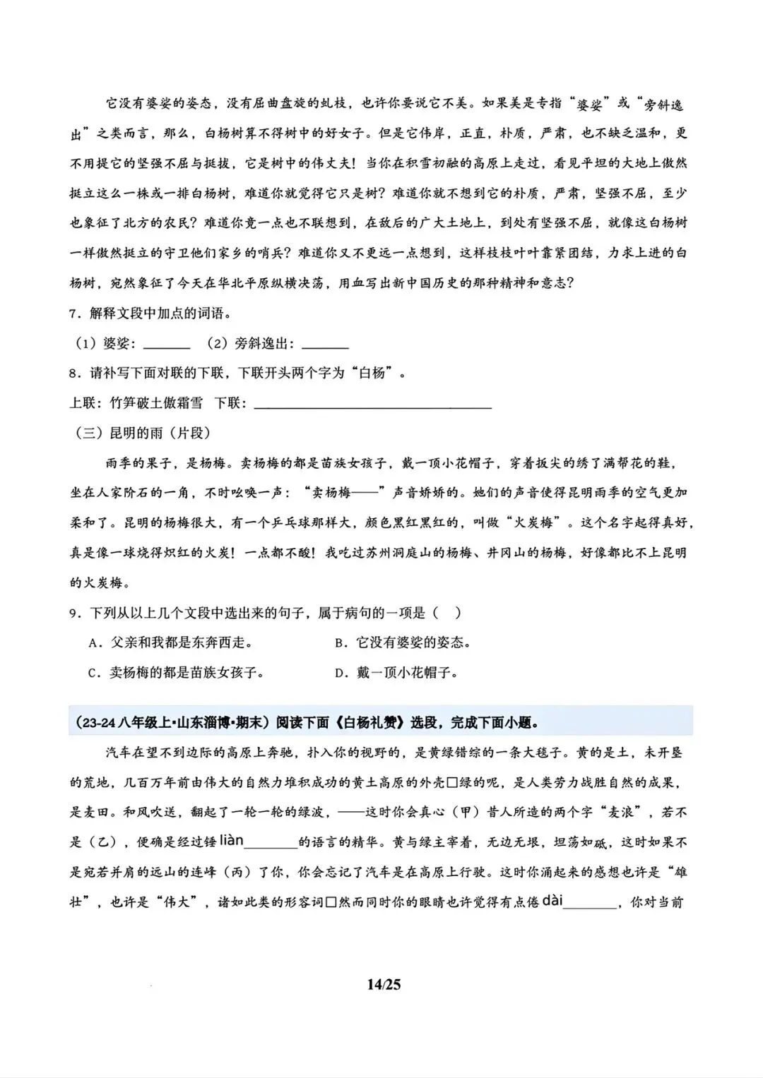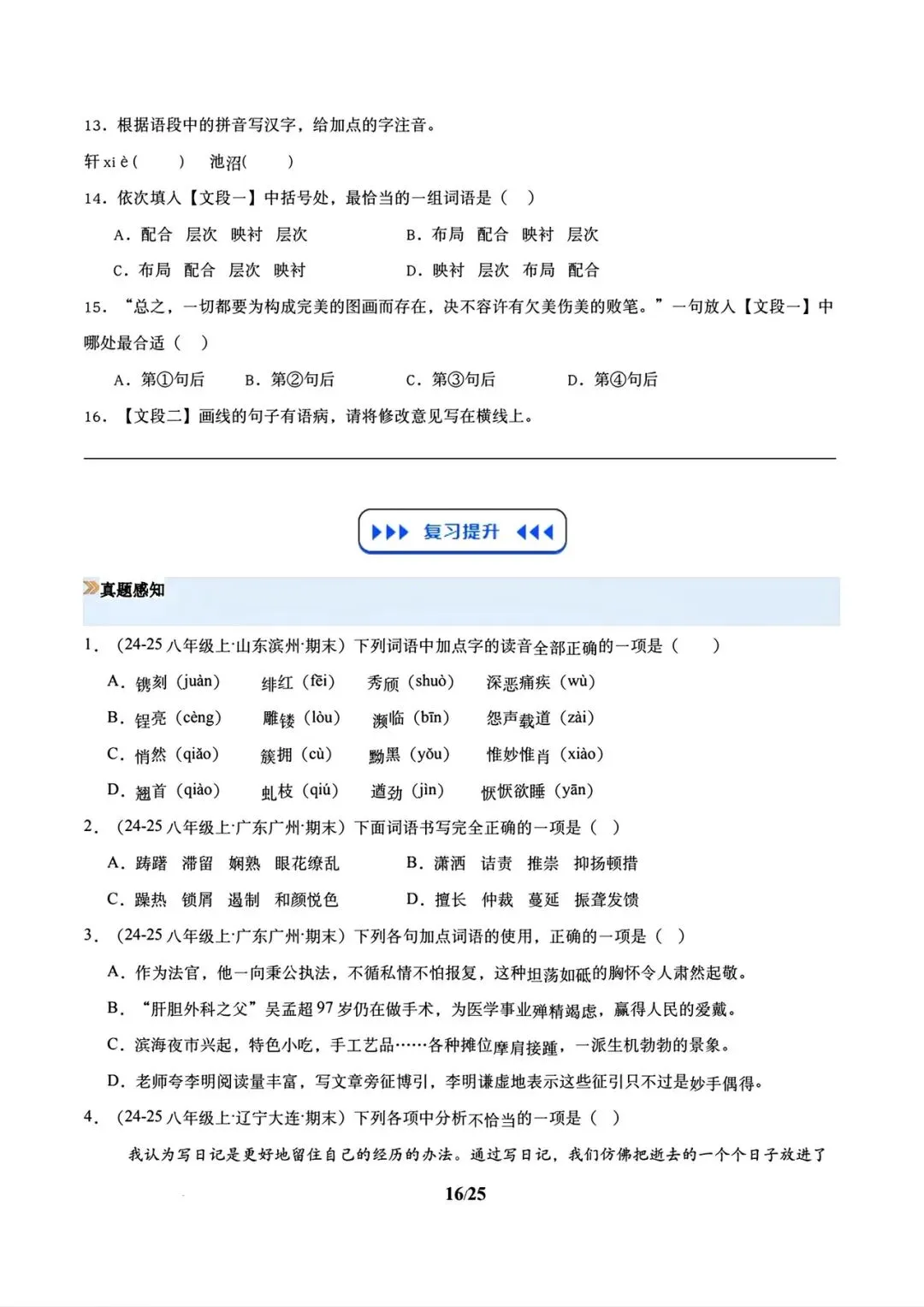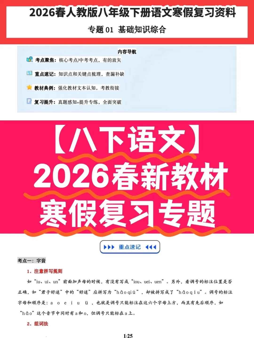 >2026春八年级下册语文寒假复习讲义包含基础知识+名著阅读+古诗默写与鉴赏+文言文默写+说明文阅读+散文专题(学生版+教师版)