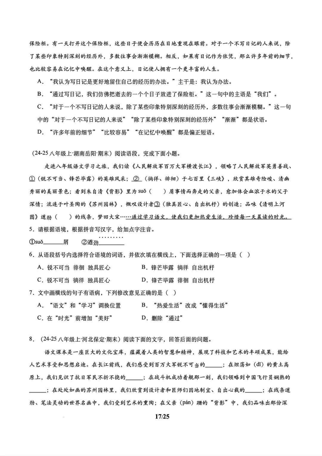 26新六年级上册语文期末复习课件1-8单元(AI融合,含教学设计)