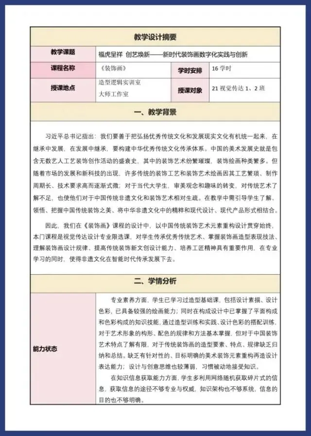 >2022年教学能力大赛《装饰画》教案教学实施报告新时代装饰画数字化实践与创新视觉传达专业