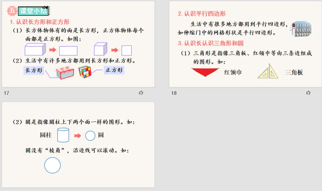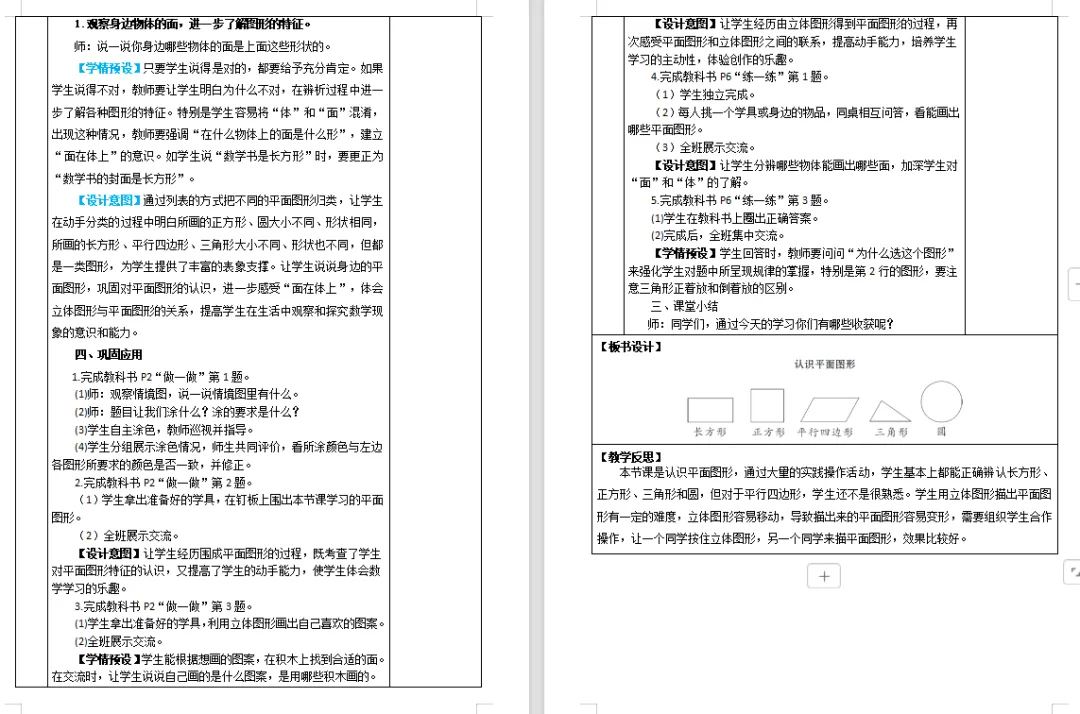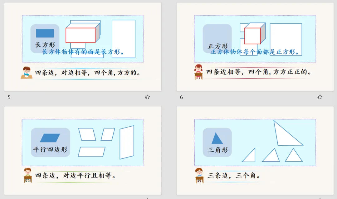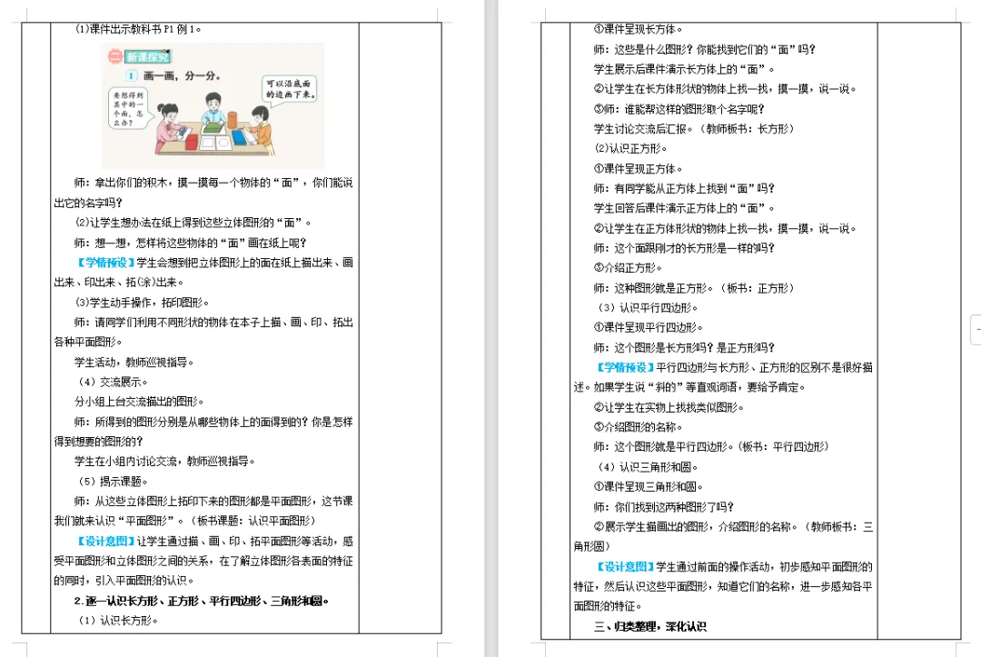 【数学教案课件】新教材人教版小学数学一年级下册全册核心素养表格配套课件(含反思)《第1课时 认识平面图形》