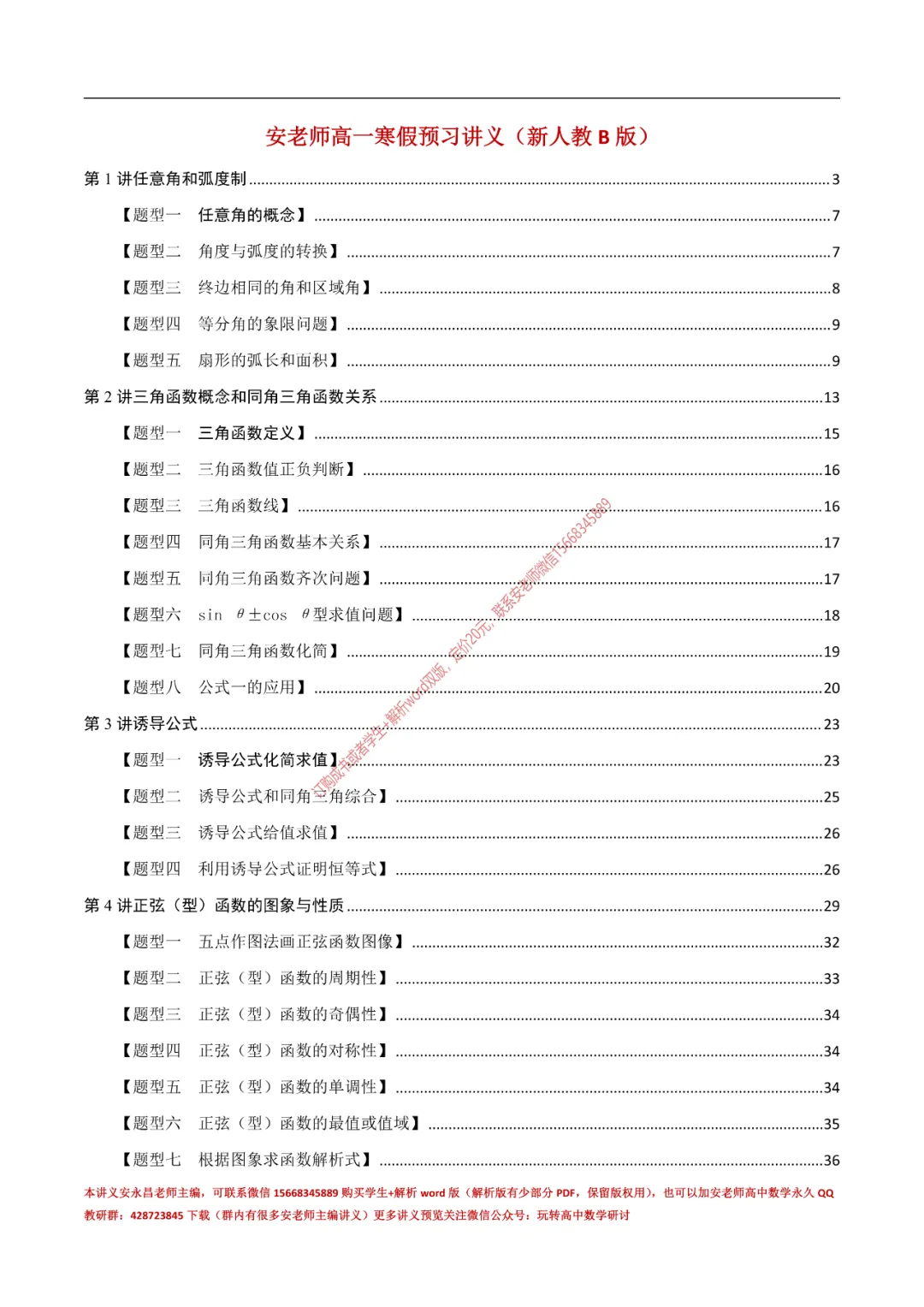 当前位置:首页>讲义>安老师高一寒假预习讲义(新人教B版)