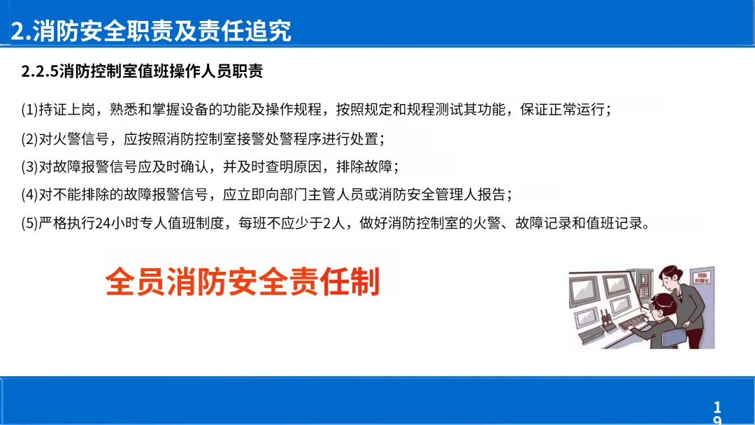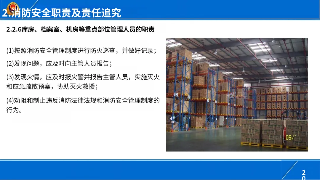 重点岗位:消防控制室值班人员持证上岗,实行24小时双人值班;库房、机房等重点部位管理人员落实每日巡查。