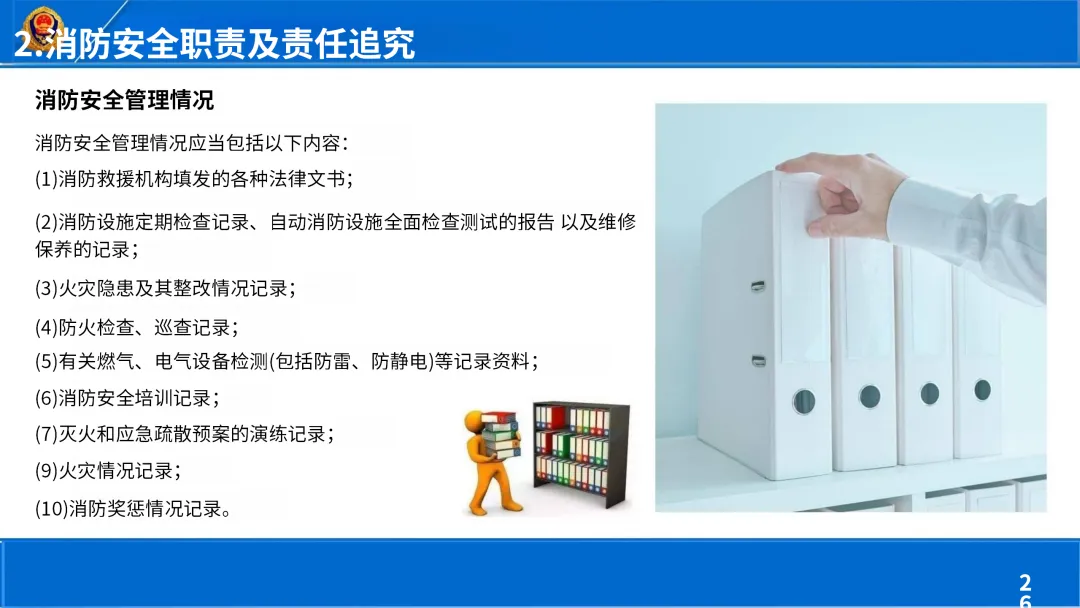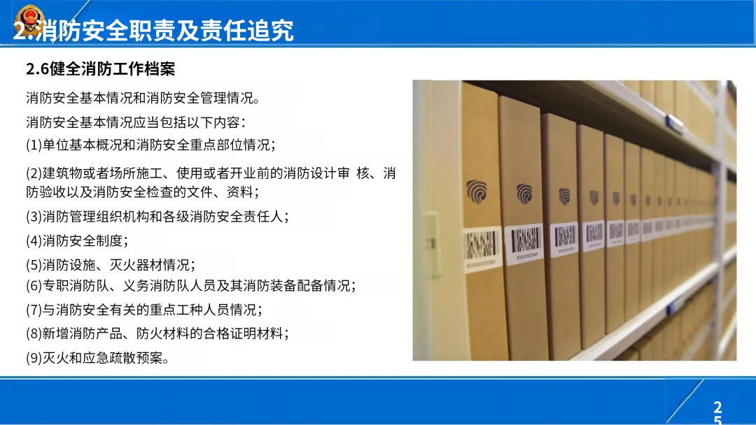 健全消防档案:包含单位基本情况、消防设施资料、检查记录、培训演练记录等。