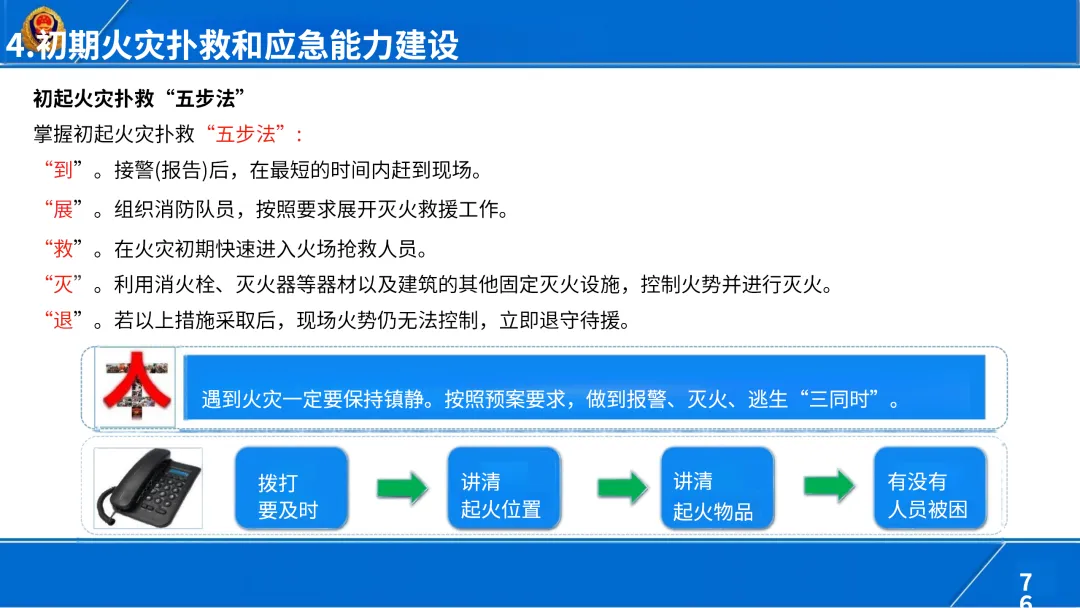 黄金时间:起火后2-3分钟为扑救关键期,快速利用就近消防设施控制火势。