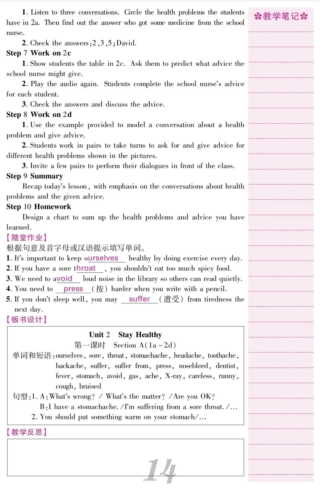 >新人教版八下Unit2 教案