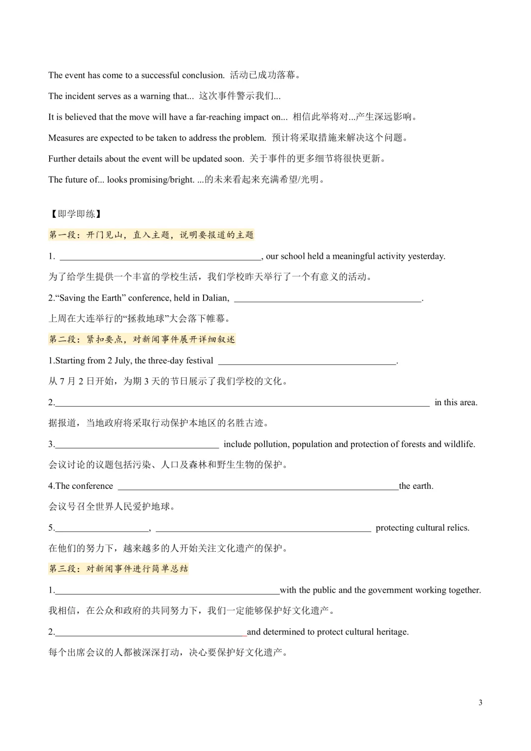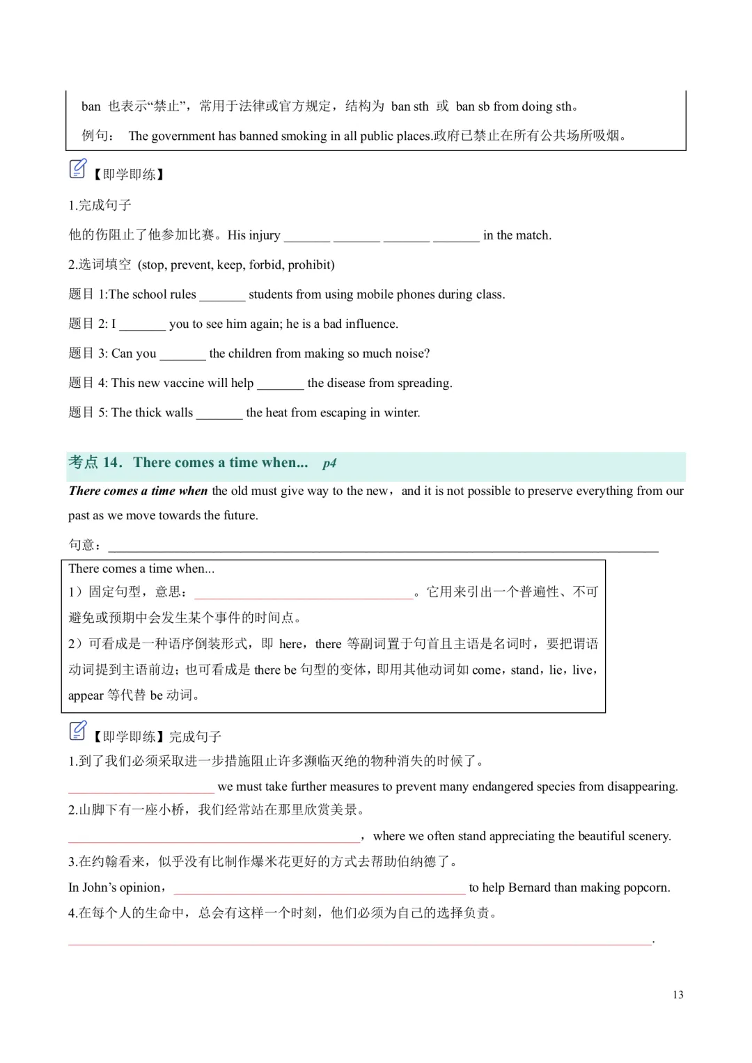 (学生版是练习设空的版本,教师版则是练习有答案的版本)