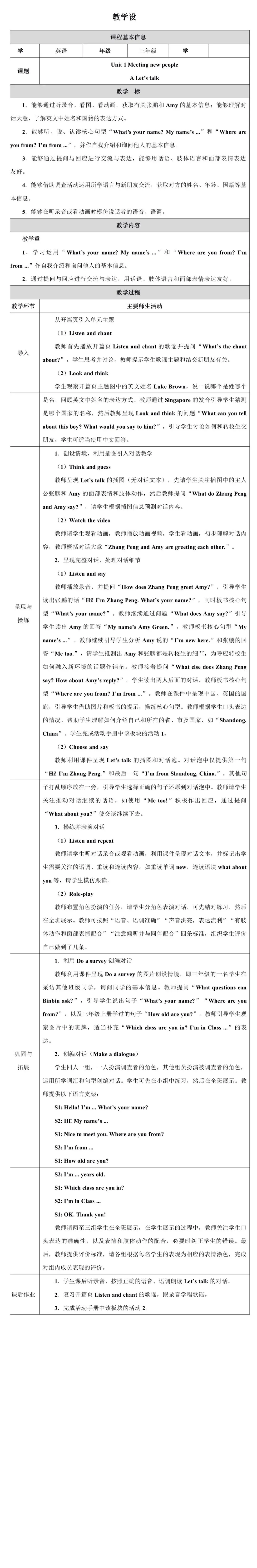 【数学教案课件】新教材教科版版小学数学一年级下册全册文本配套教案(含反思)《第1课时 认识平面图形》