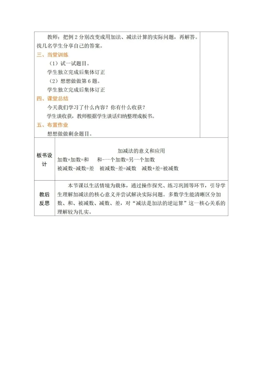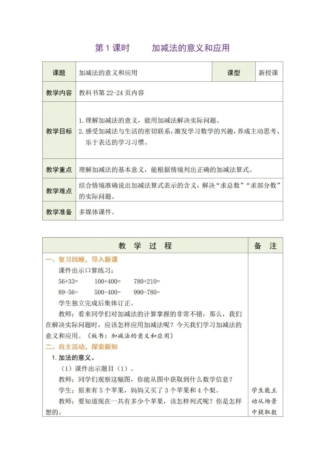 2026春学期一年级下册数学核心素养教案样板【人教版】