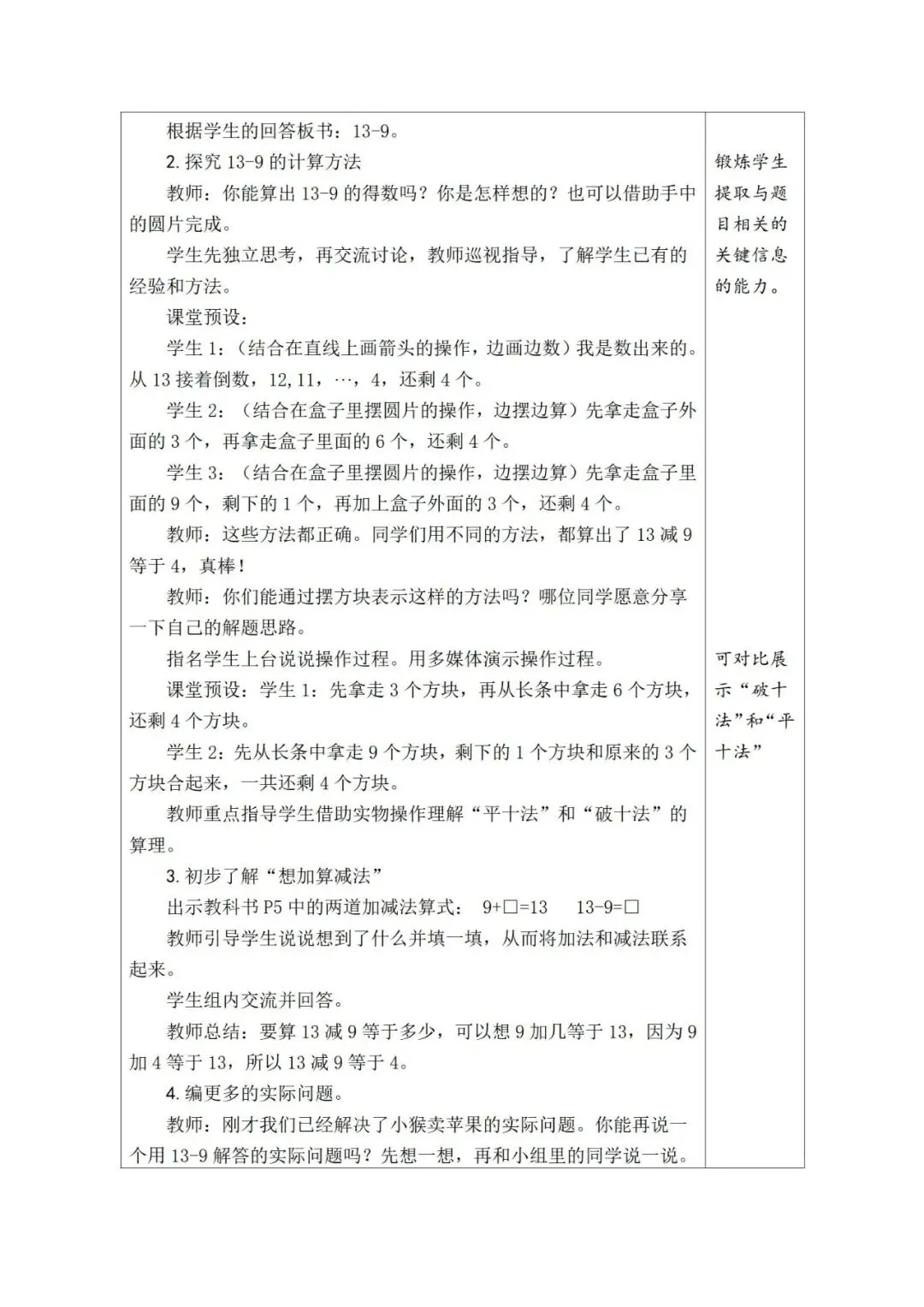 2026春学期一年级下册数学核心素养教案样板【人教版】