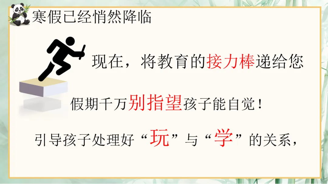 感谢大家的聆听,接下来的时间,我们也可以自由交流。祝您和孩子度过一个安全、充实、温暖的寒假!
