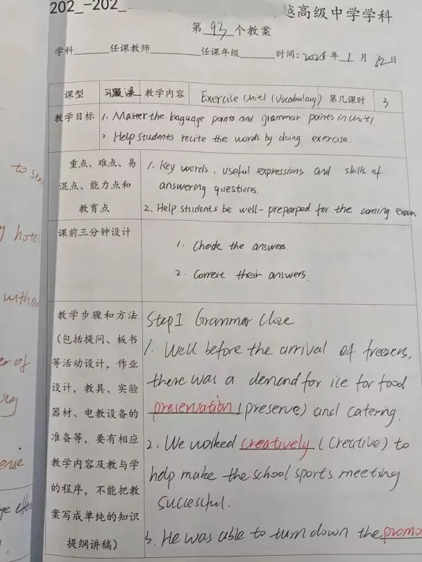 本次分享围绕教案的规范性、完整性、创新性与实效性展开。一份份优秀教案中,教学目标清晰明确,紧扣学科核心素养;环节设计层层递进,充分彰显以学生为主体的教学理念。教师们不仅书写工整、内容详实,更格外注重课后反思的撰写,从课堂反馈中提炼经验、优化策略,尽显对教学实践的深度思考与持续优化的执着追求。