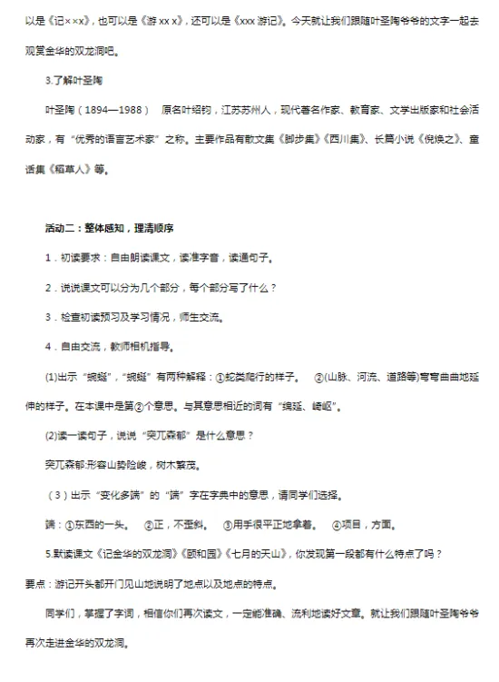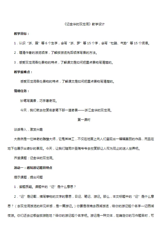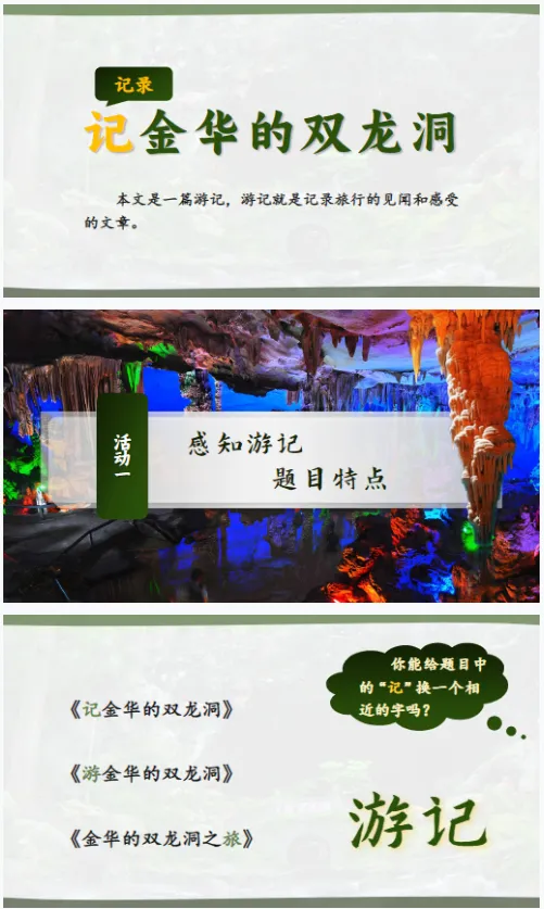 【精品课件】四年级下大单元教学《记金华的双龙洞》课件PPT+教案