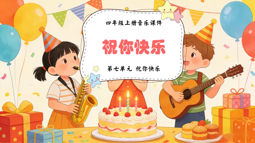 人音版🎸新版四年级音乐上册《祝你快乐》公开课课件ppt,自制音乐课件ppt,共24页,音频已插入,可编辑😘😜