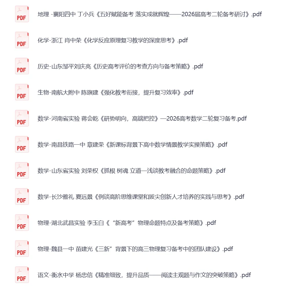 今天给大家带来了:2026版高中《高考二轮复习讲座课件汇编》精准备考,包含(语文、数学、英语、物理、生物、化学、历史、地理)高考二轮复习考查方向、命题备考策略、提升复习效率,文末可下载完整PDF电子版,请关注我领取。下载全册电子版,请拉到文章底部篇幅有限,仅展示部分截图