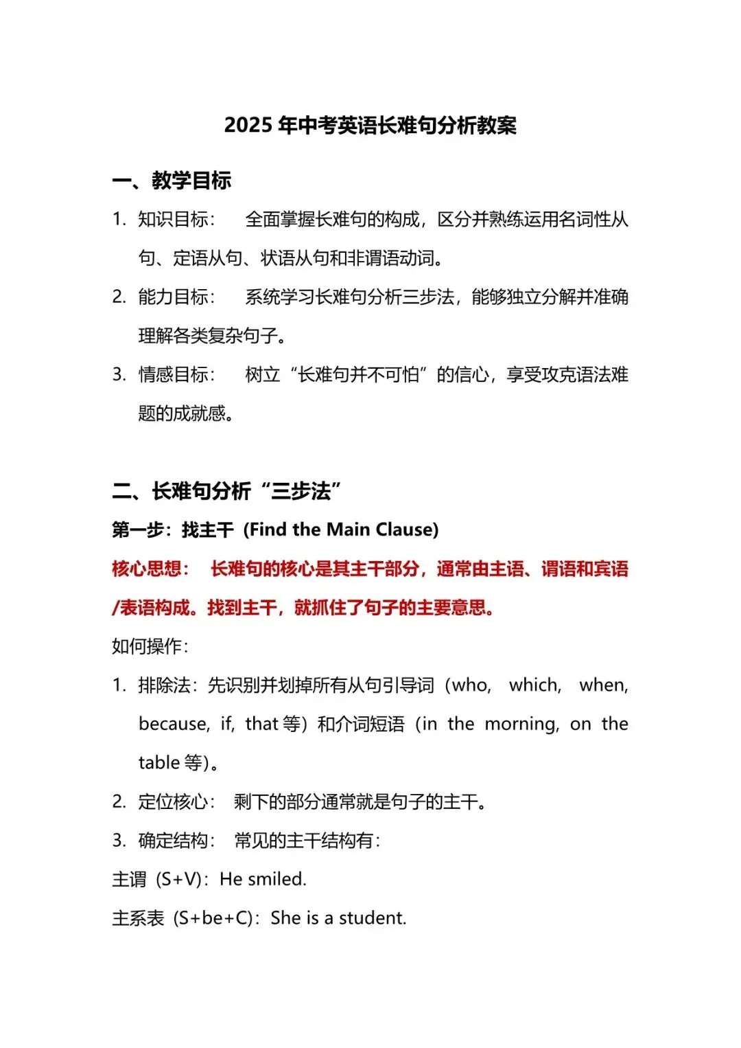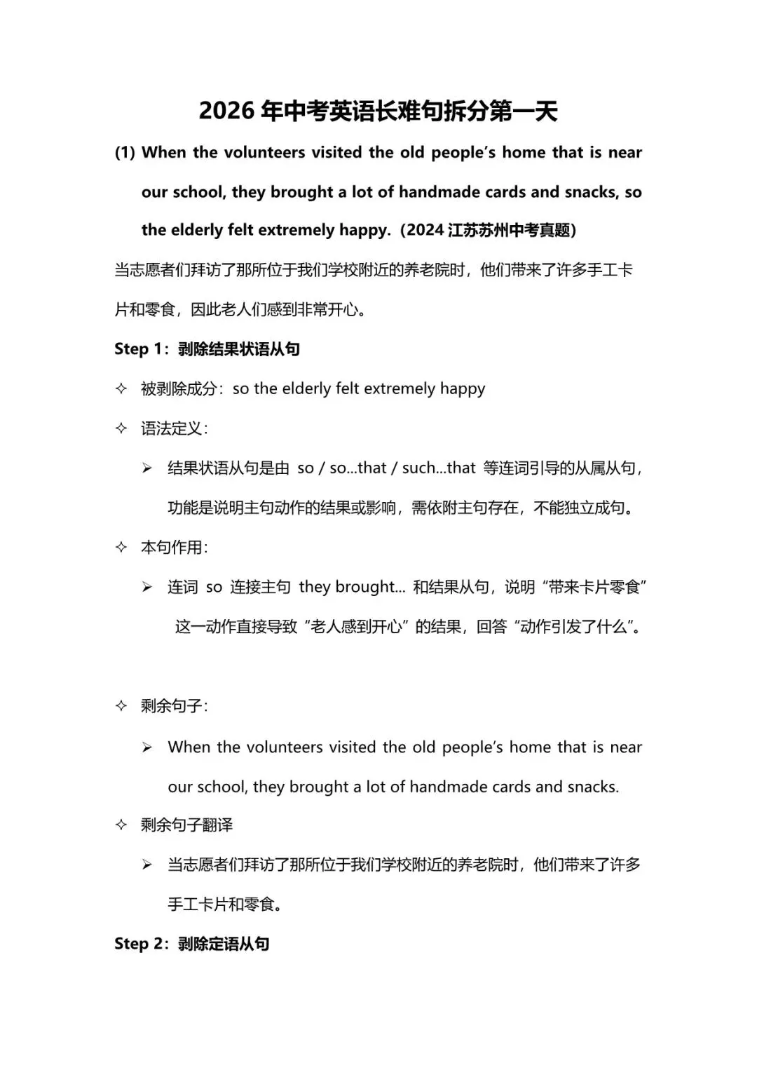 2026中考英语长难句分析教案+长难句每日一练,电子版可打印!
