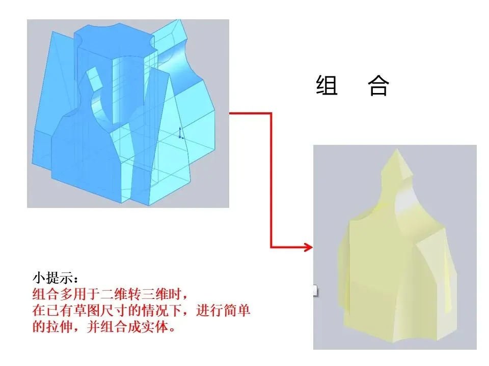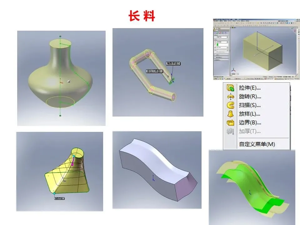 长料是从无到有构建实体,核心是把二维草图转化为三维结构,重点掌握 4 个关键特征: