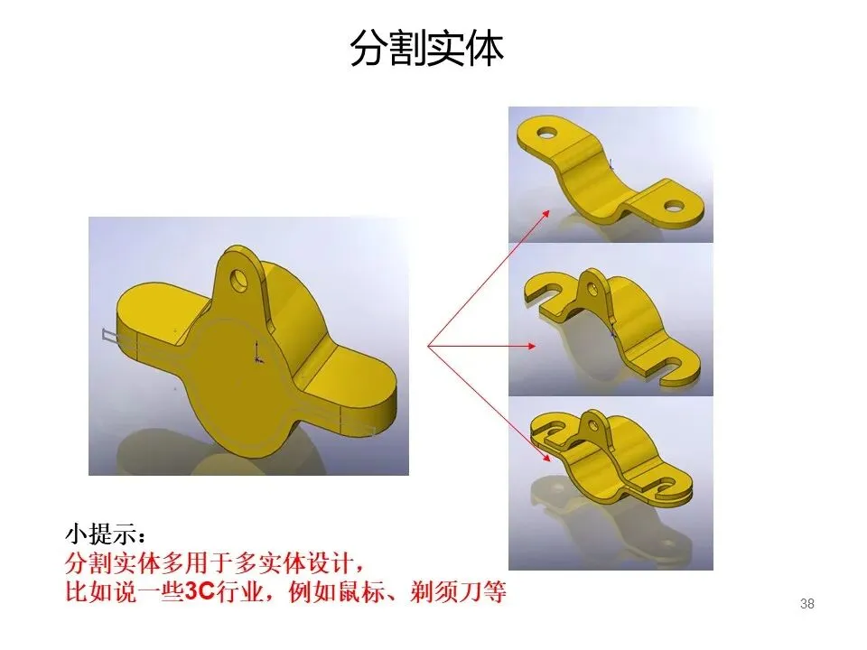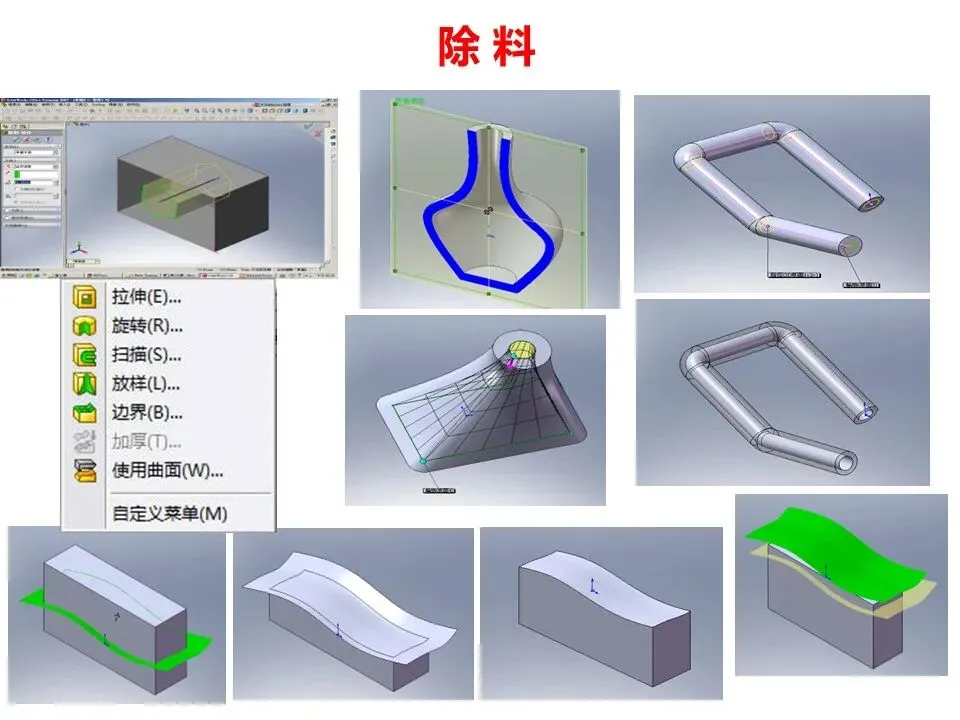 除料是从实体中去除部分材料,比如开槽、打孔,常用的有拉伸除料、扫描除料、曲面除料等。操作时要注意选择正确的草图平面和切除方向,比如 “完全贯穿” 的终止条件,适合需要打通零件的孔位设计。
