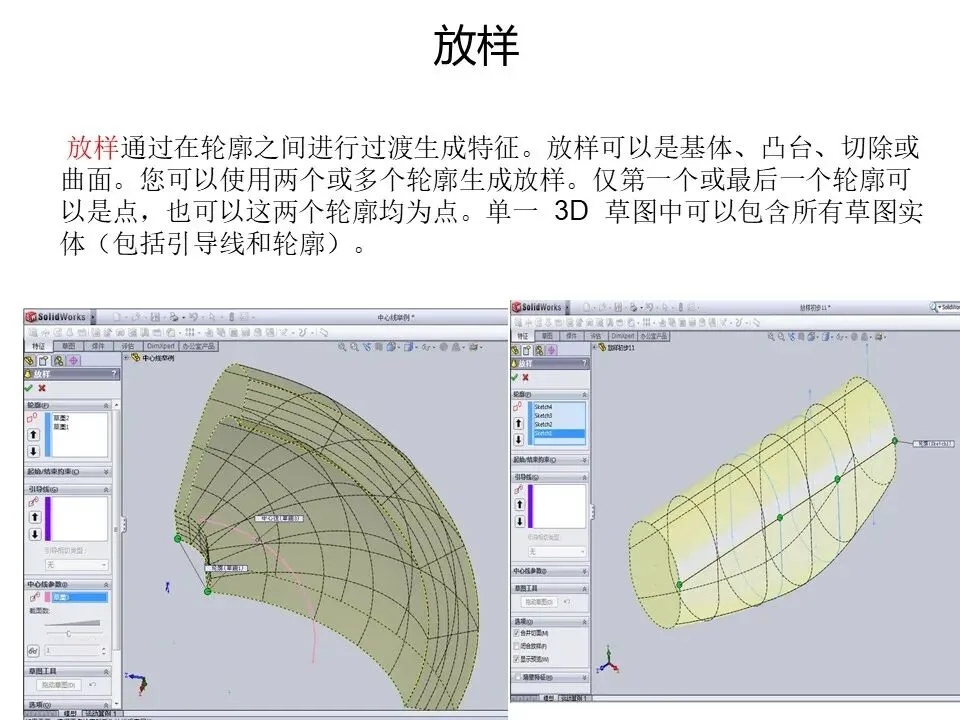 放样:在多个轮廓间过渡生成复杂形状,比如从圆形过渡到方形的实体,支持添加引导线控制过渡曲线,适合不规则零件。