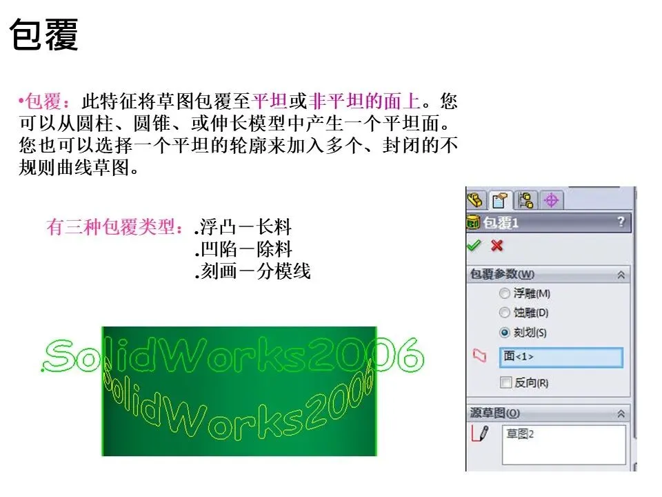 草图特征:基于二维草图生成,比如把矩形草图拉伸成方块、圆形草图旋转成圆柱,常见的有拉伸、旋转、扫描、放样等,是构建零件主体的基础;