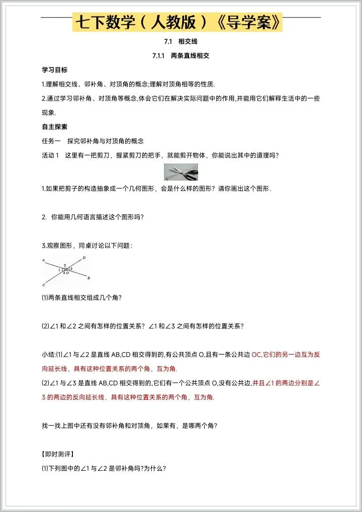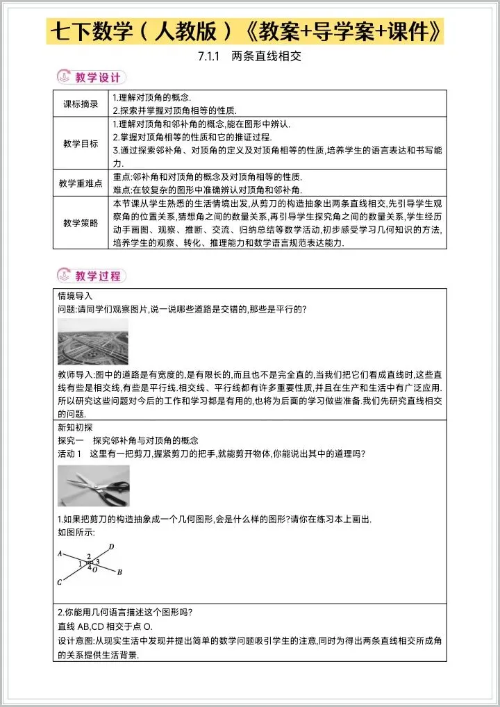 【2026春】七下数学(人教版)《教案+导学案+教学课件(全套)》,有完整电子版Word文档可编辑,可下载可打印